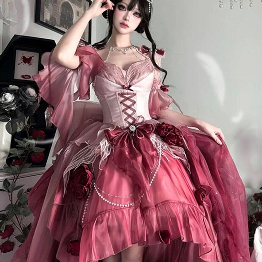 ピンクから深みのあるレッドへのグラデーションが美しいロリータドレスです。