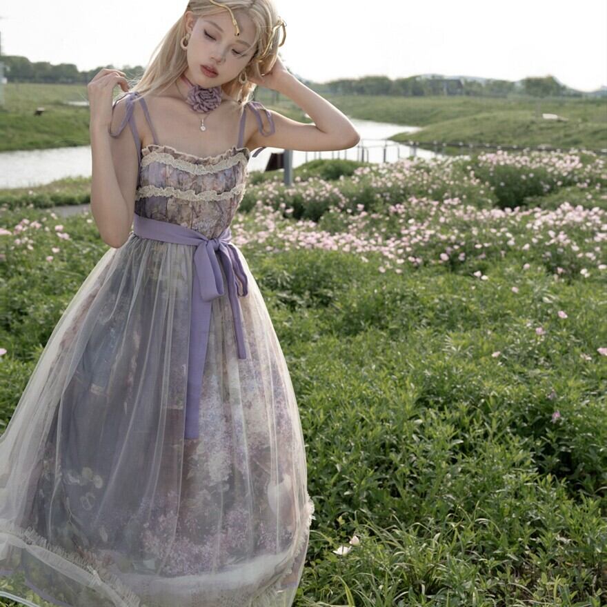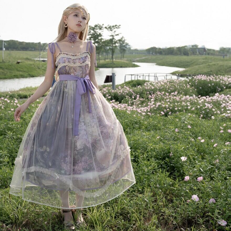 関連キーワード: #ロリータ #クラロリ #ワンピース #パステルカラー #パープル #レース #チュール #花柄 #エレガント #ドレッシー #可愛い
