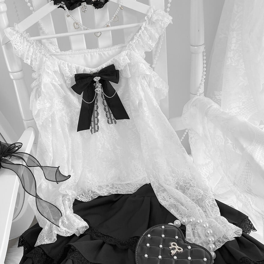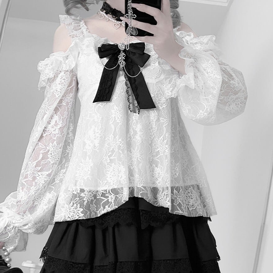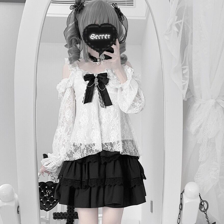 ゴシック 地雷 ブラウス 甘辛MIX オープンショルダー レース