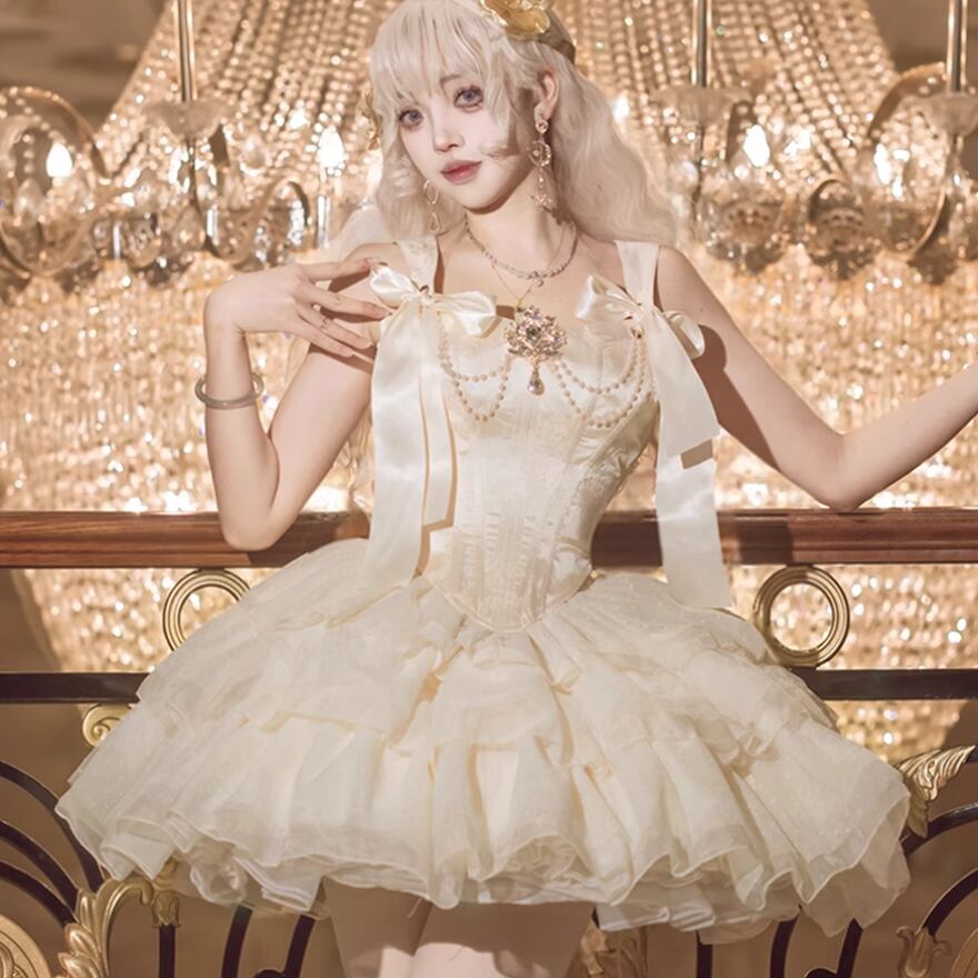 ロリィタドレス ステージ衣装 シャンパン ワンピース コンカフェ イベント衣装 バレエ風