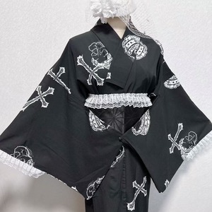 【デザイン】:クロス柄、スカルプリント、袖フリル、和装風シルエット