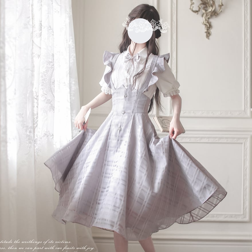 パフスリーブと、前立てにあしらわれたフリルが、上品でドーリーな印象を与えます。
