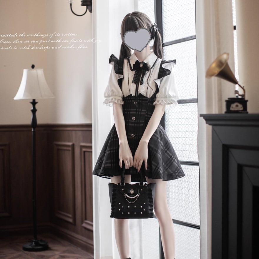 関連キーワード: #ロリータ #クラロリ #サスペンダースカート #チェック柄 #モノトーン #エレガント #シック #可愛い