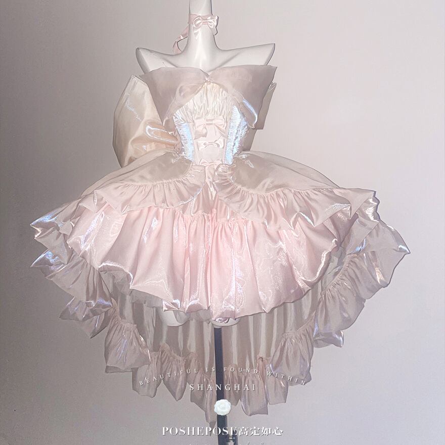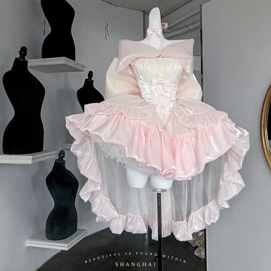 ロリィタ パーティドレス ふんわり ピンク バックリボン スカートカバー イベント衣装