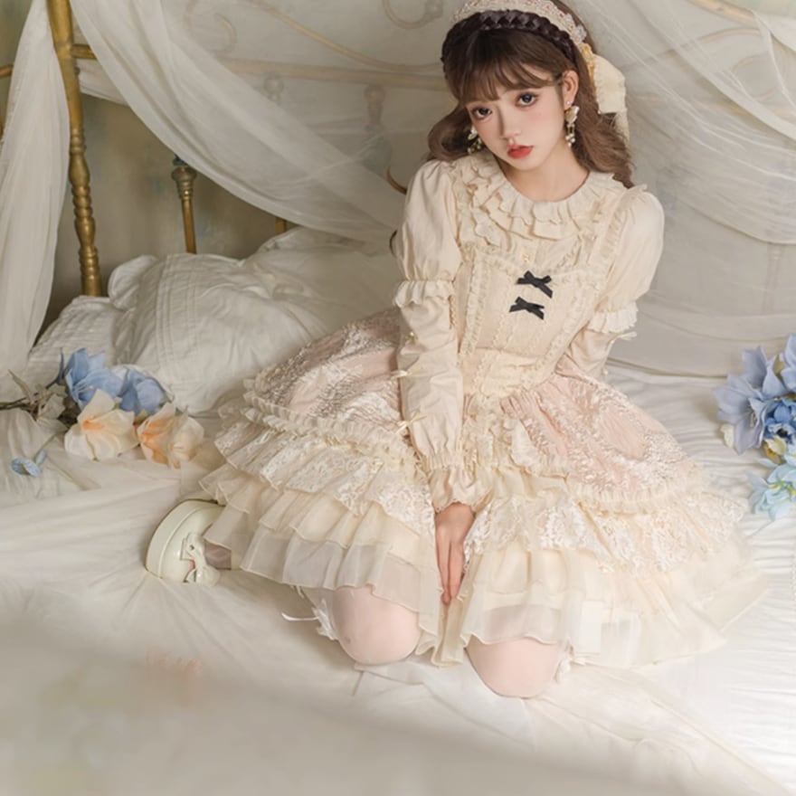 上品な色合いとクラシカルなデザインが、幅広いロリータファッションに合わせやすい一着です。