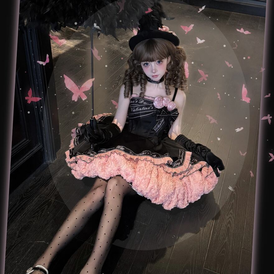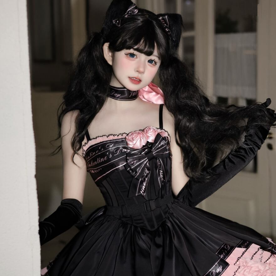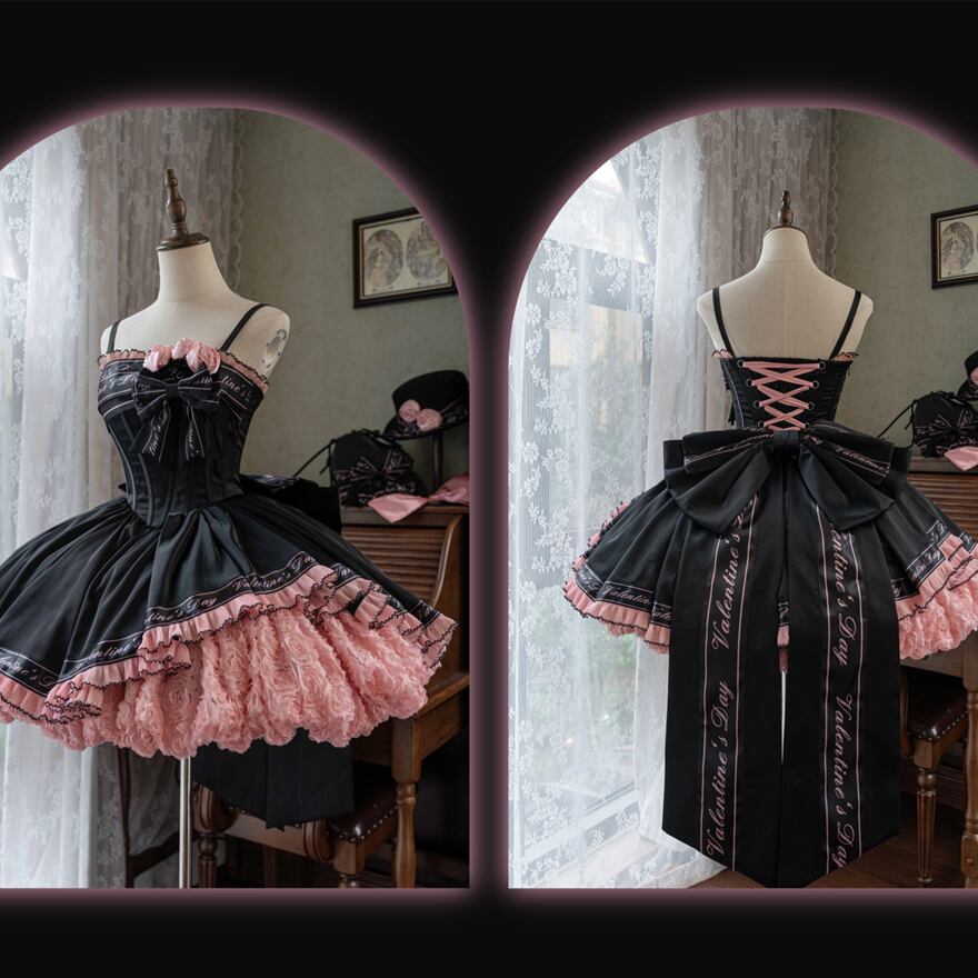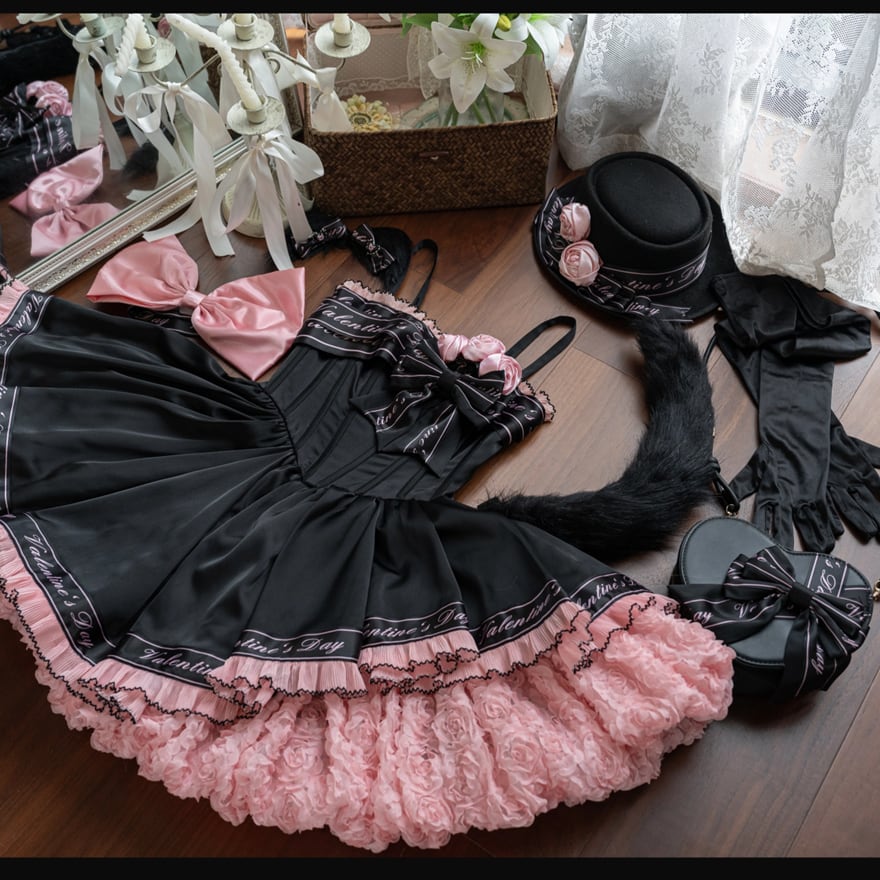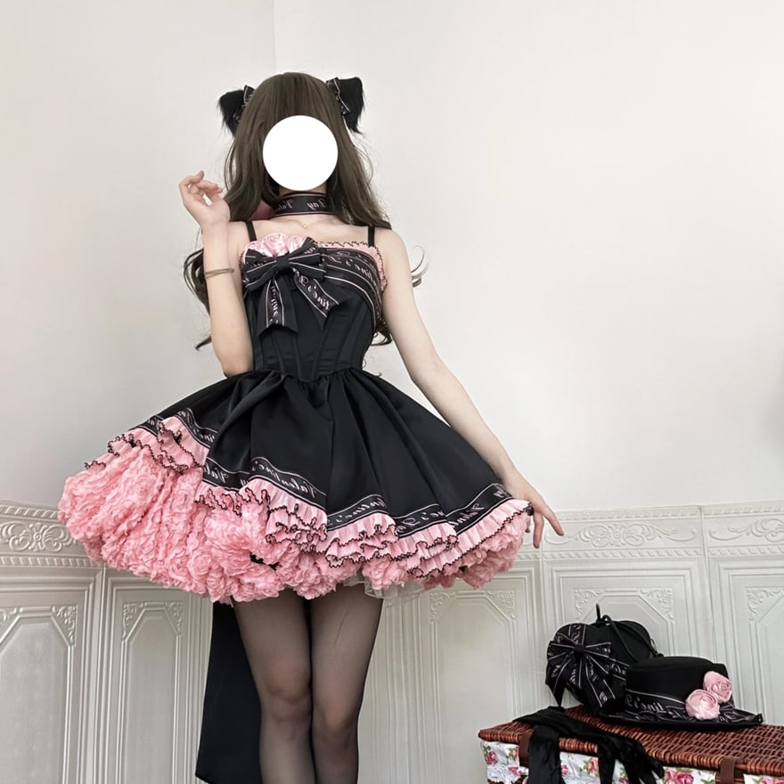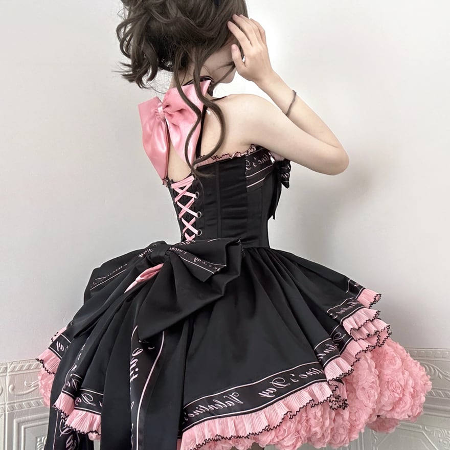 関連キーワード: #ロリータ #ロリィタ #ジャンパースカート #ブラック #ピンク #甘辛 #ゴスロリ #可愛い #小悪魔 #リボン #フリル
