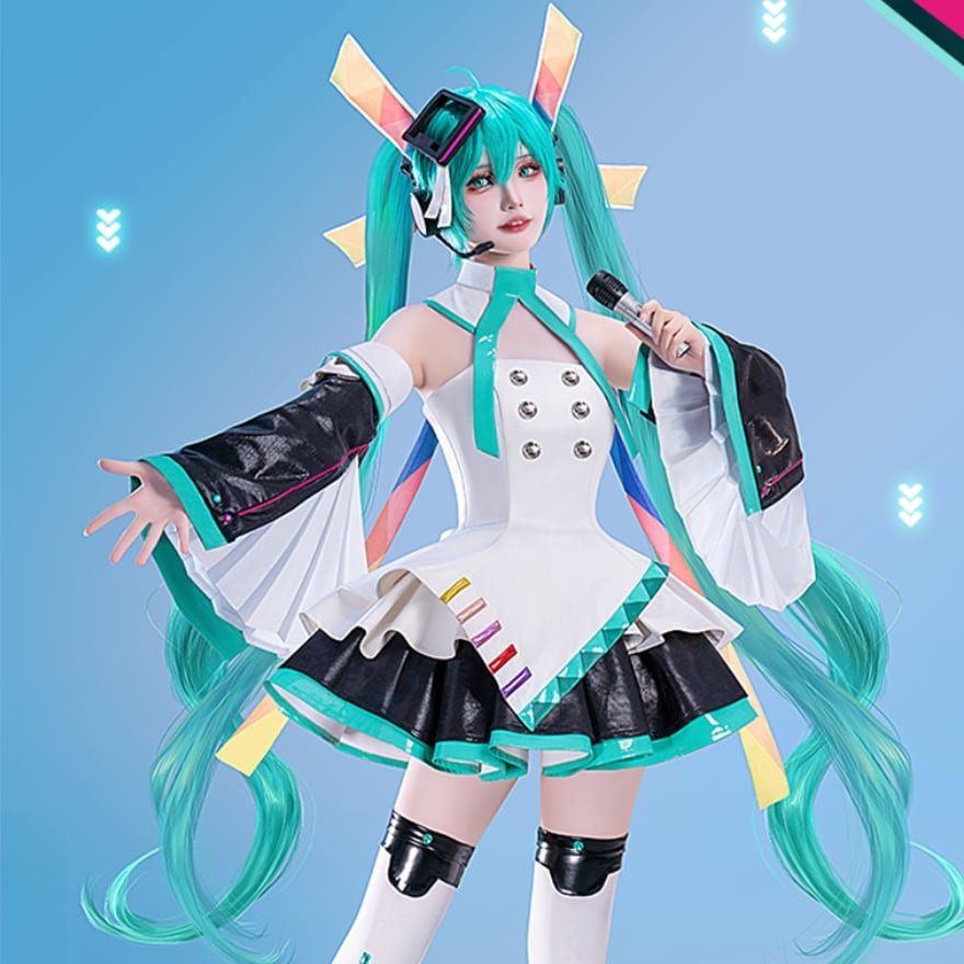ツインテールのウィッグや、ヘッドセット、ニーハイソックスなどの小物を合わせて、さらに完成度の高いコスプレを楽しめます。