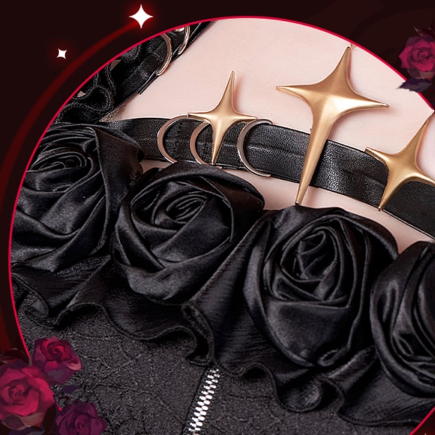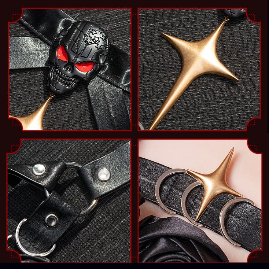 ハロウィンをテーマにした、ダークでゴシックな雰囲気のコスプレ衣装です。