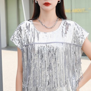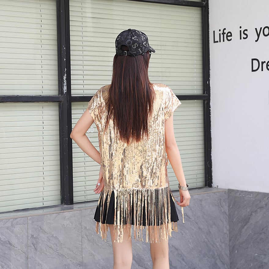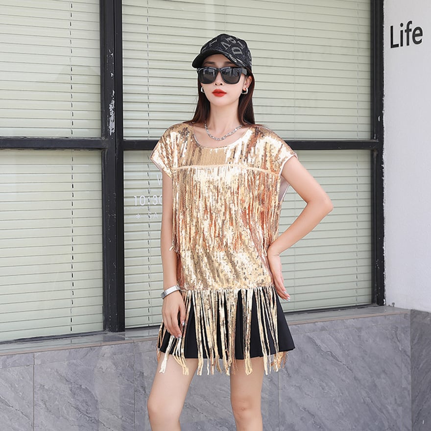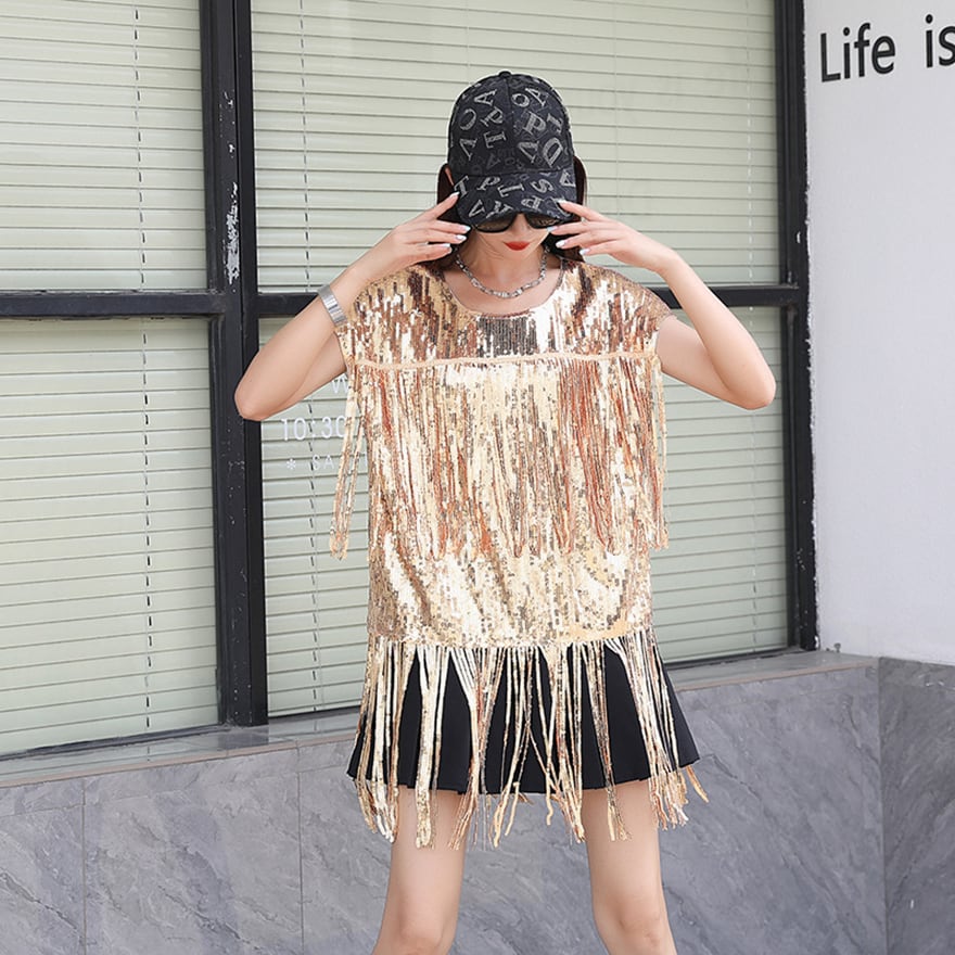 きらびやかなスパンコールと、裾に施されたフリンジが特徴的な、ステージ映えする衣装です。