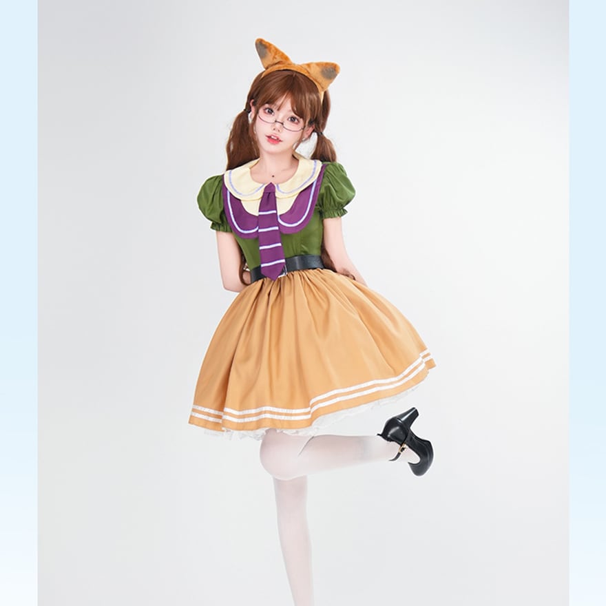 アニマルコスプレ衣装 : ワンピース+ネクタイ+ヘッドドレス+尻尾+ベルト(手袋は含まれません)