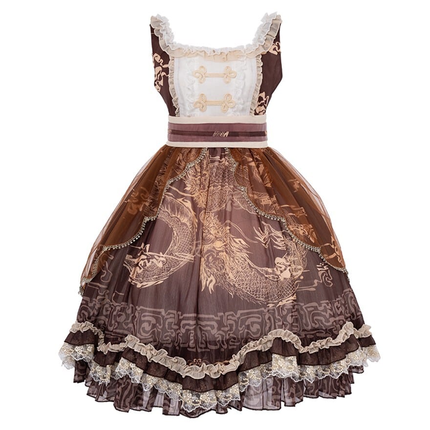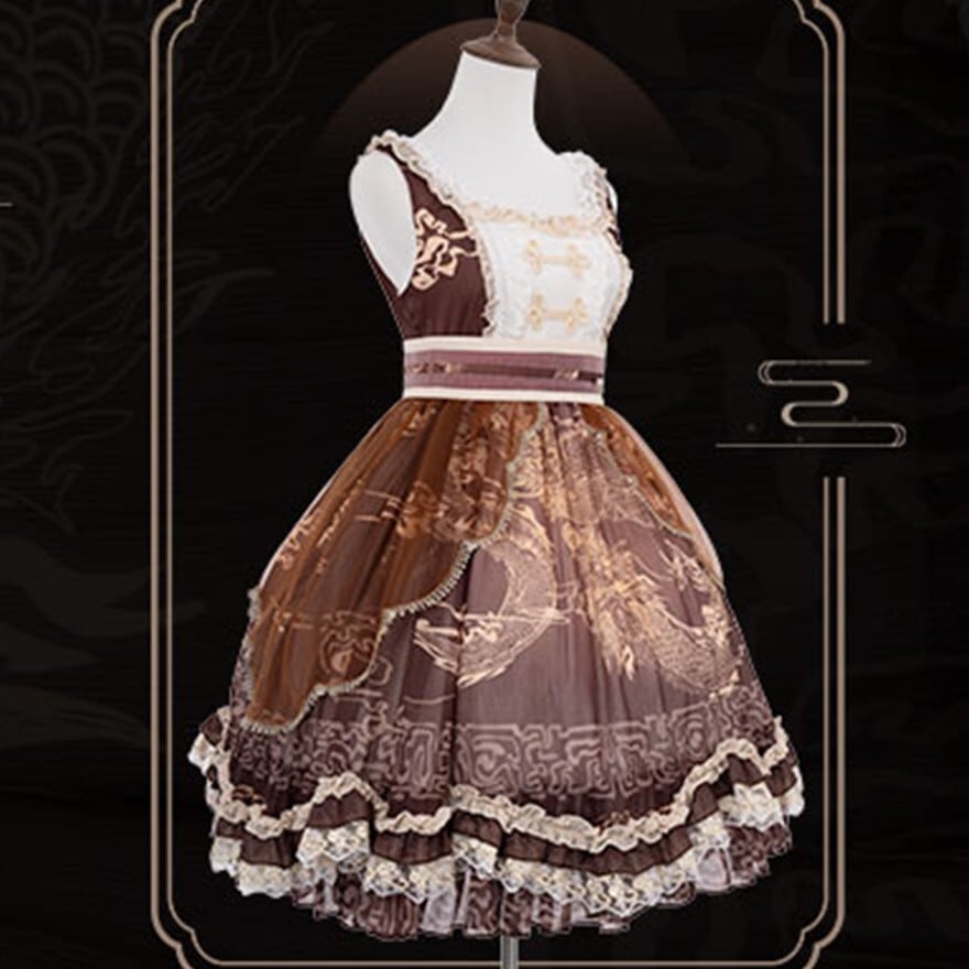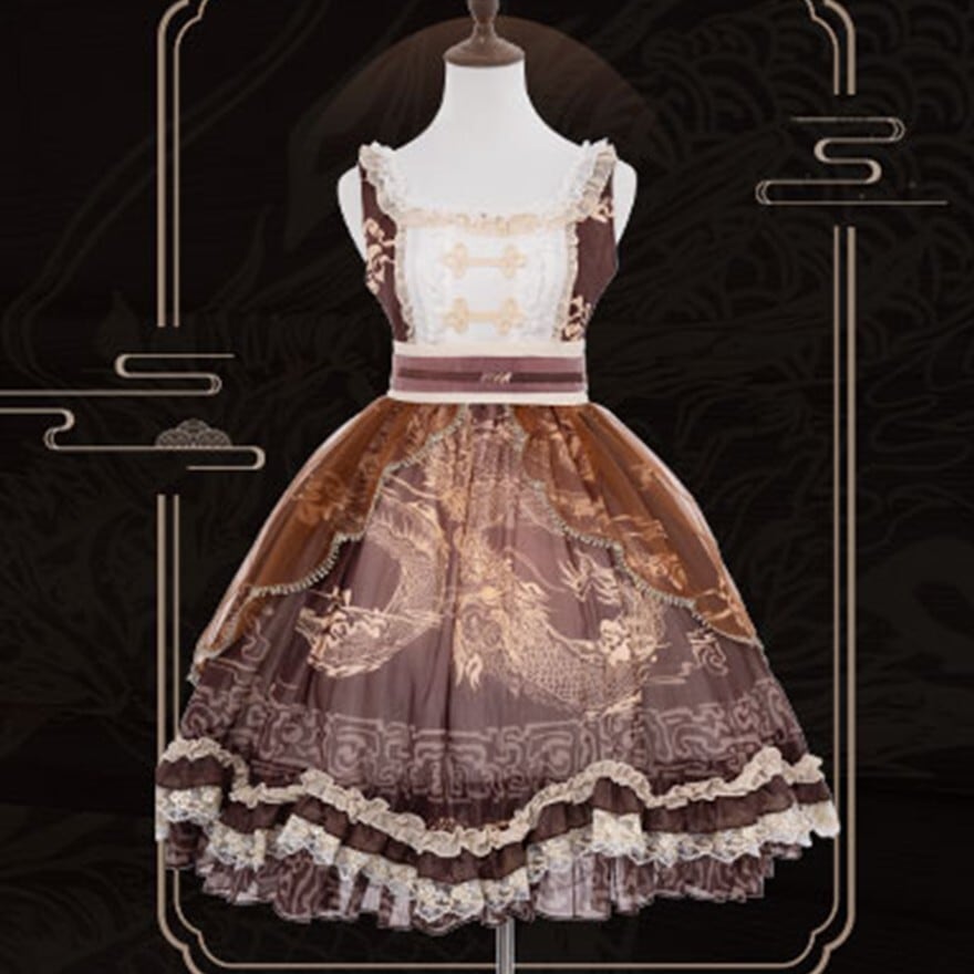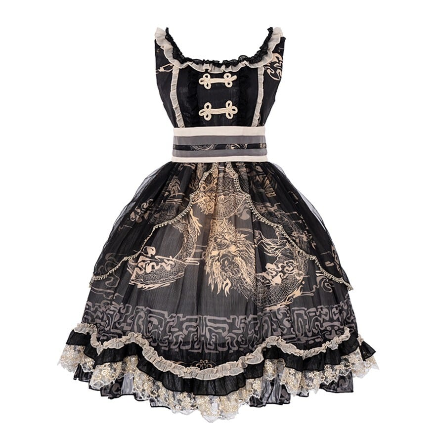 中華ロリィタ クラシカル ジャンパースカート ドラゴン柄 プリント チャイナ風スカート
