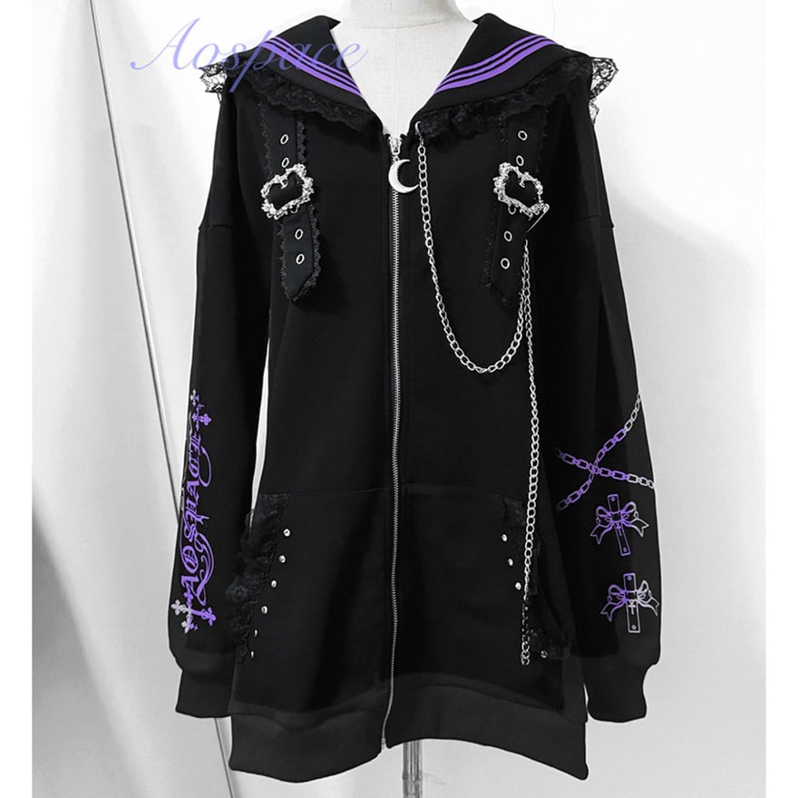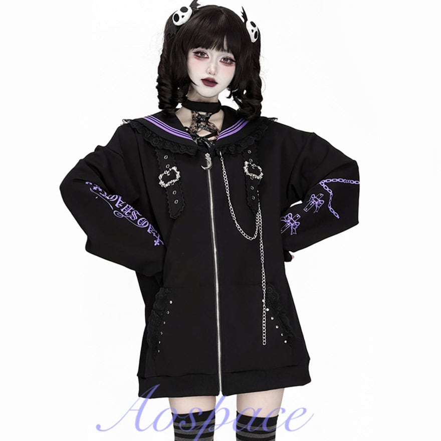 セーラーカラーに、ハードなディテールを詰め込んだ地雷系ジップアップジャケットです。