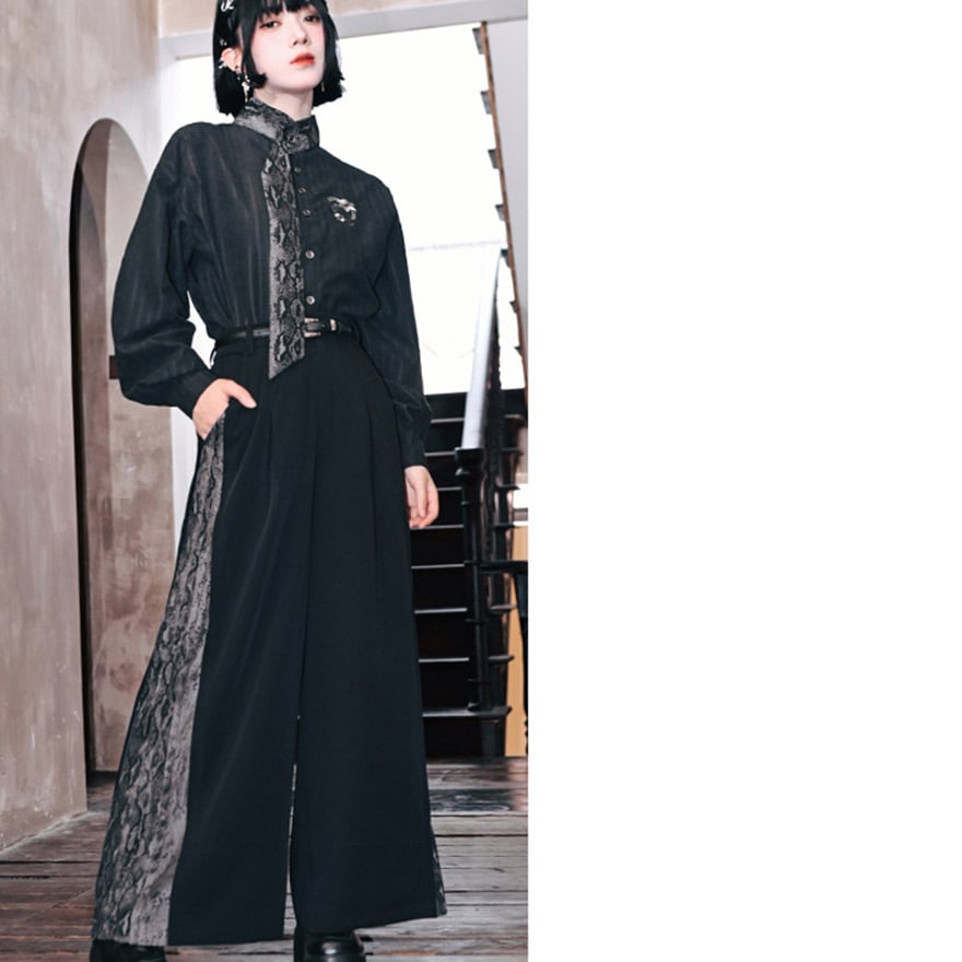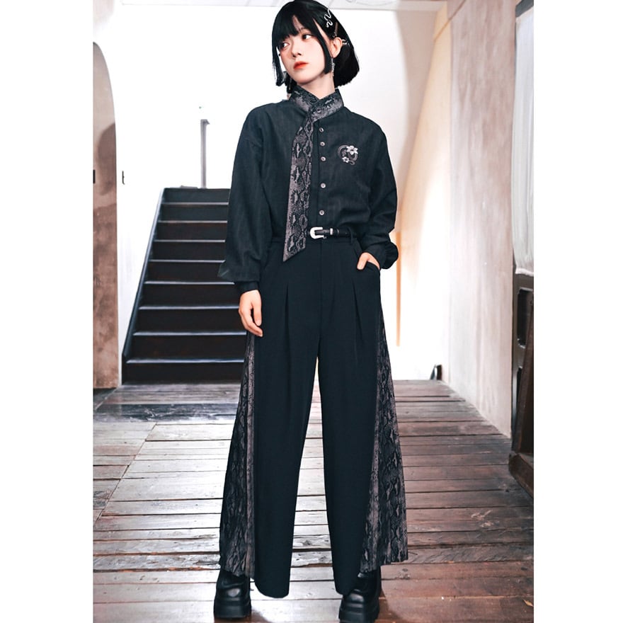 天使と悪魔 ワイドパンツ レトロ 中華風 スリット 古怪舍 サブカル系ファッション アラサーファッション ストリートファッション