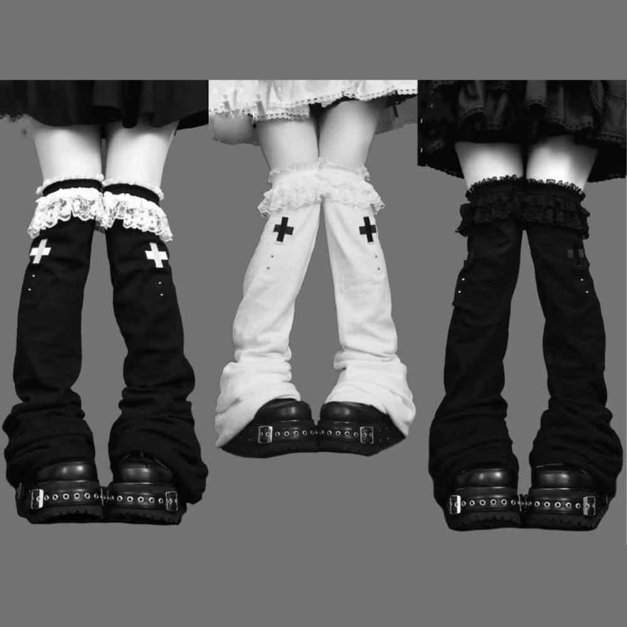 即納 サブカル系地雷 ニーハイソックス ゴスロリ ブラック/ホワイト