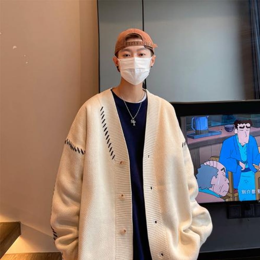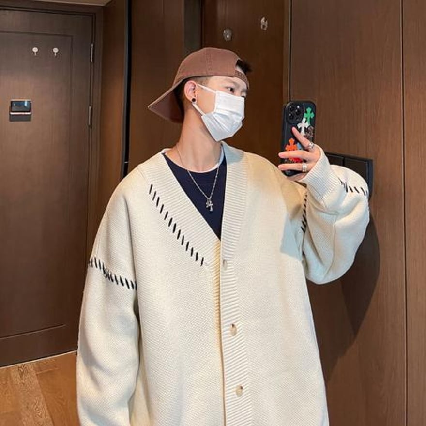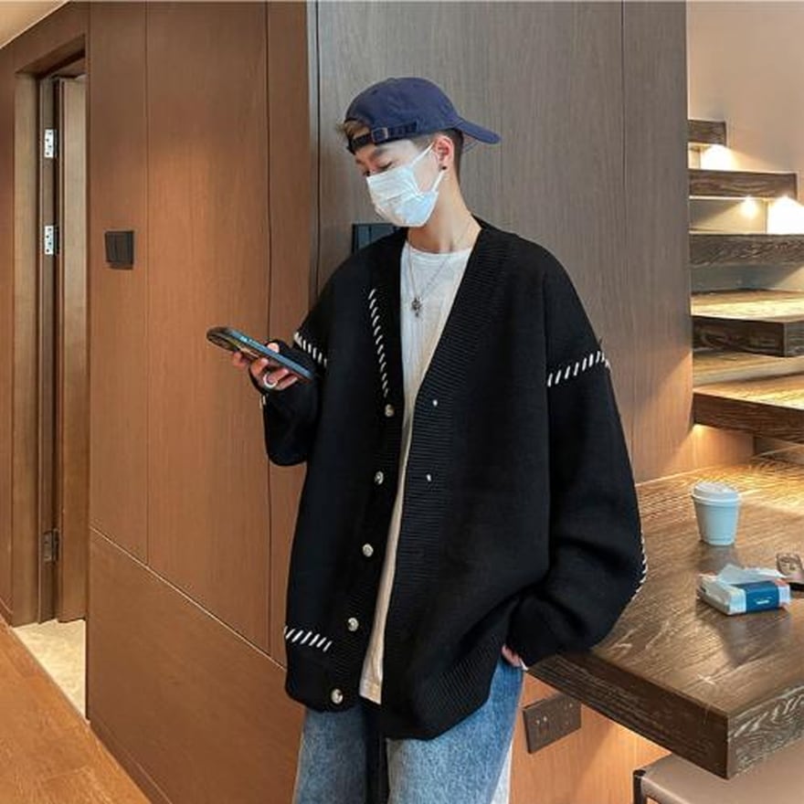 即納 ステッチ ニット カーディガン XLサイズ メンズ 秋冬服 ストリート系