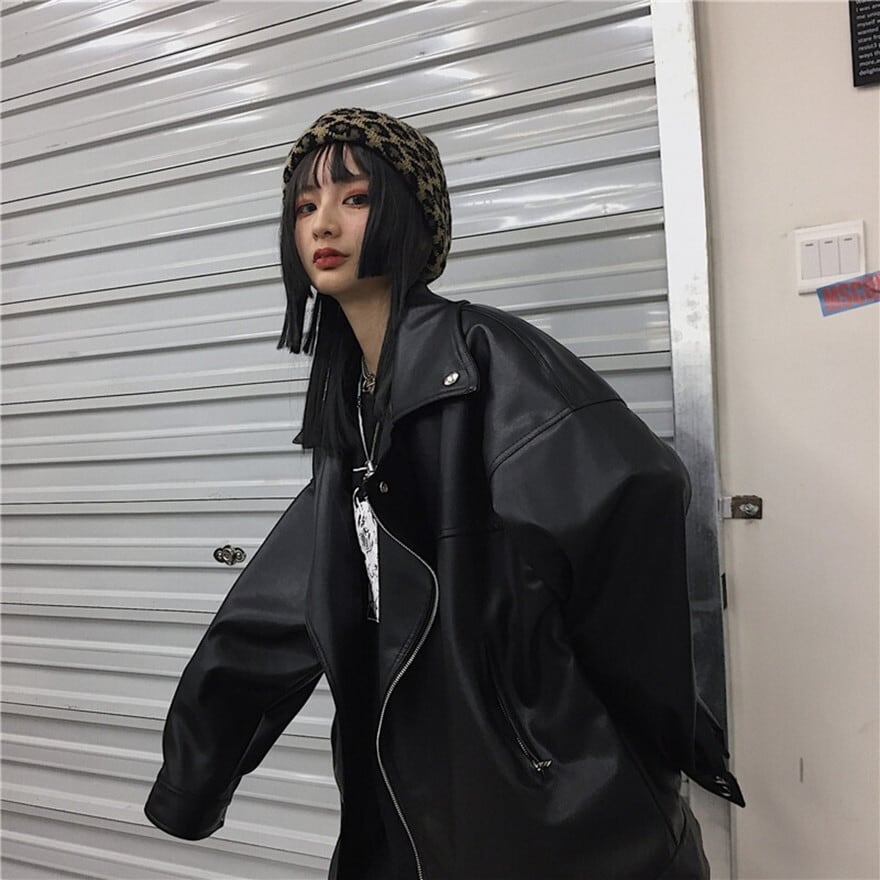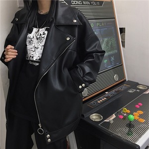 即納 サブカル系 XLサイズ ライダーズジャケット 病みかわ/韓国ストリート ビッグシルエット