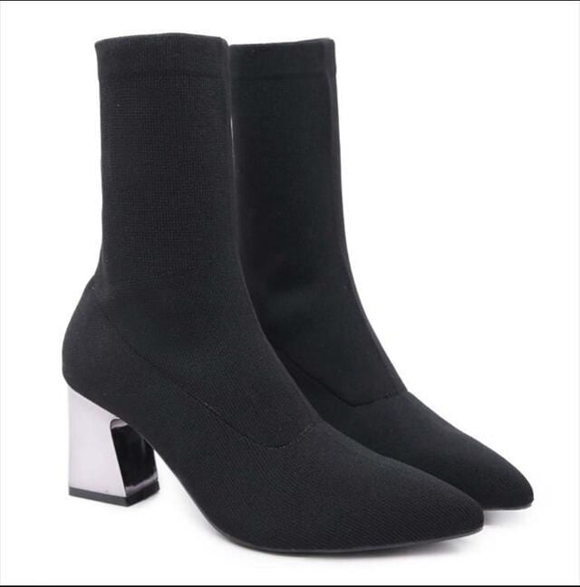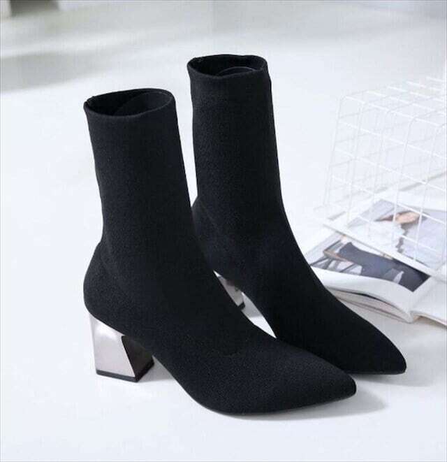 即納アイテム ソックスブーツ 24.0cm アンクルブーツ キニースタイル PUレザー ヒール7.0cm