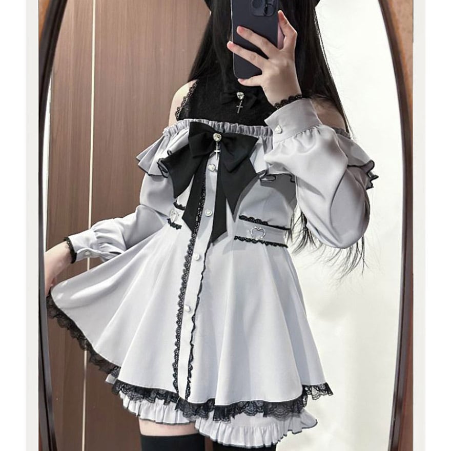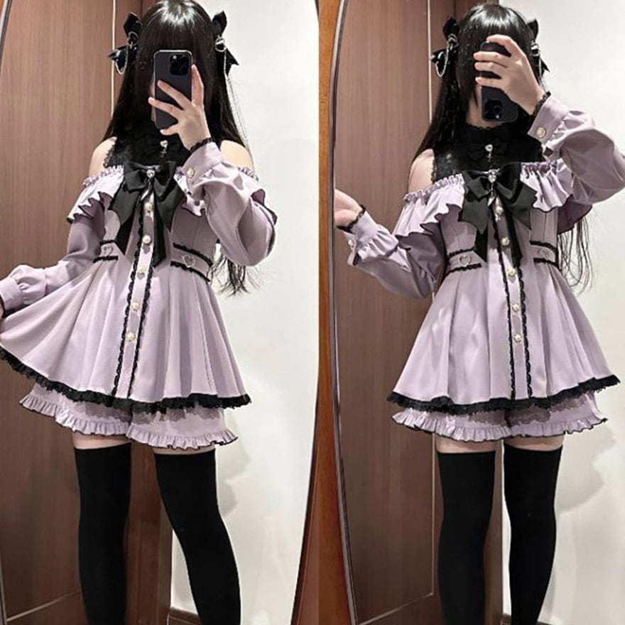 関連キーワード: #地雷系 #量産型 #サブカル #ワンピース #オープンショルダー #オフショル #ゴスロリ #闇かわいい #病みかわいい #フリル #レース #参戦服 #ロリィタ