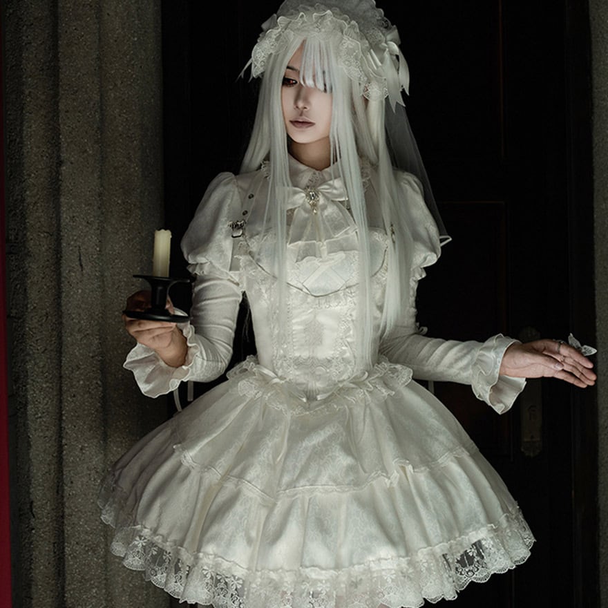 関連キーワード: #ロリータ #クラロリ #白ロリ #ワンピース #セットアップ #ミニ #白 #レース #フリル #エレガント #ドール #可愛い #参戦服
