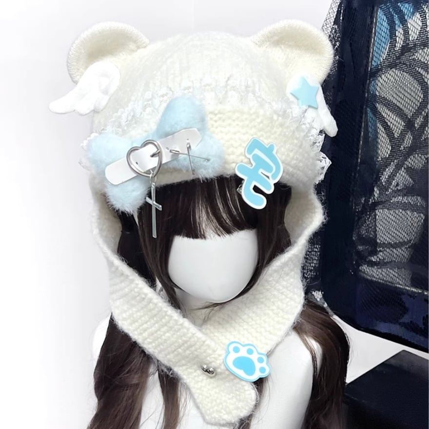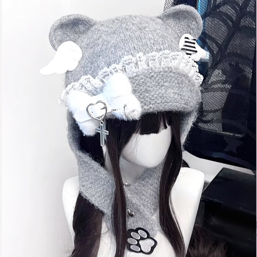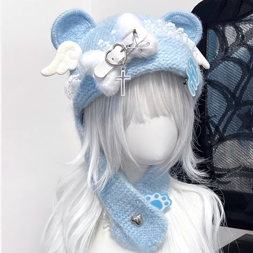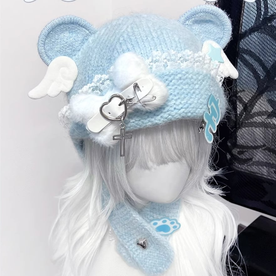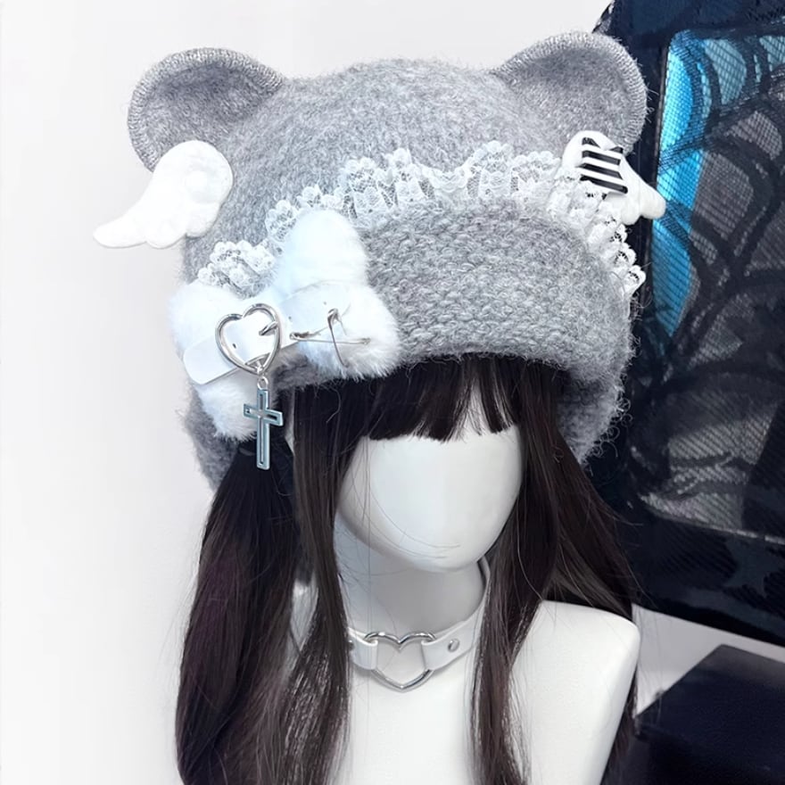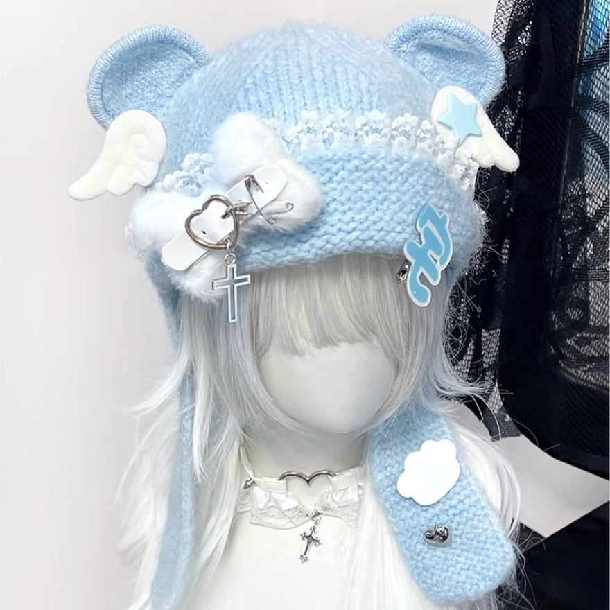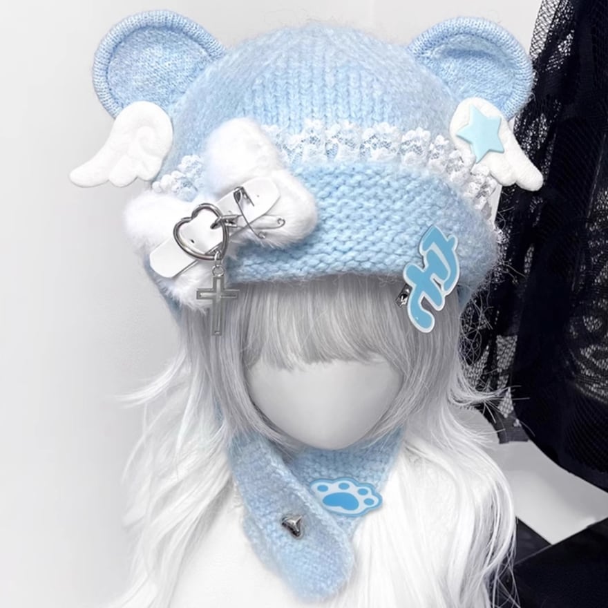 サブカル 服 地雷系 通販 チェック柄 くま耳 ニット ベレー帽サブカルチャー かわいい オタク系