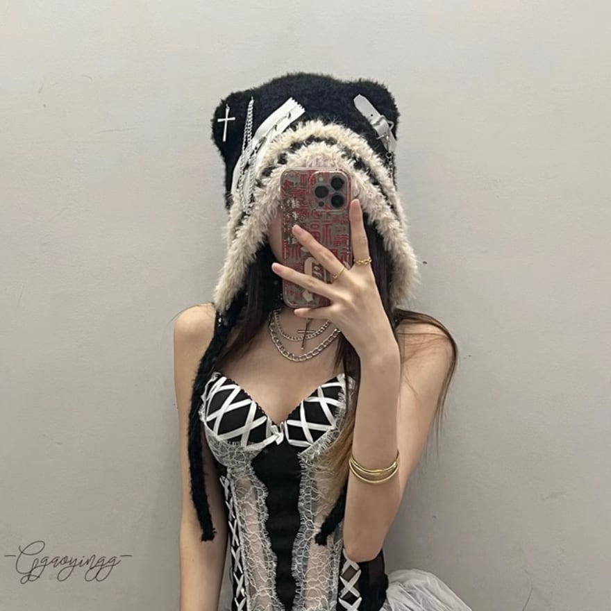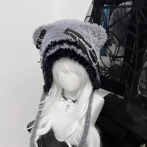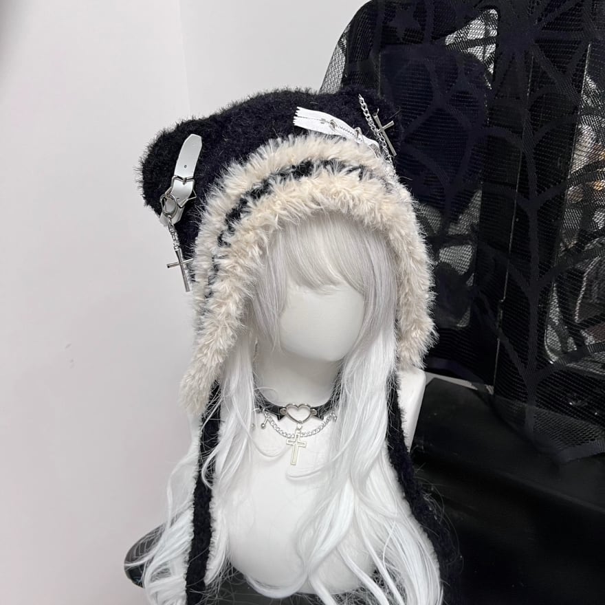 国内即納 サブカル系 地雷 ニット帽 くま耳帽子 もふもふ 闇かわいい パンク