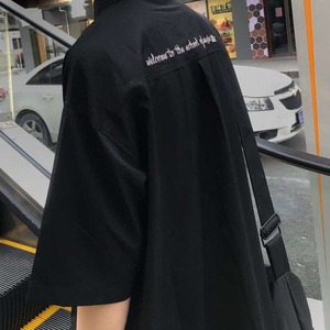 病み可愛い黒シャツにバックロゴがおしゃれな半袖シャツです。