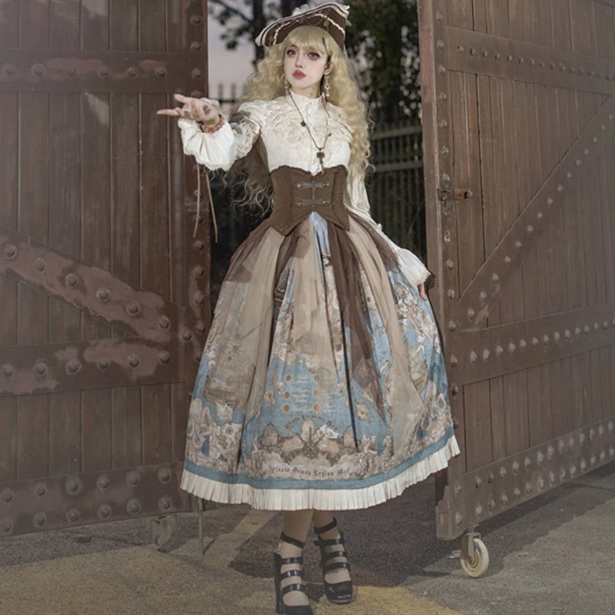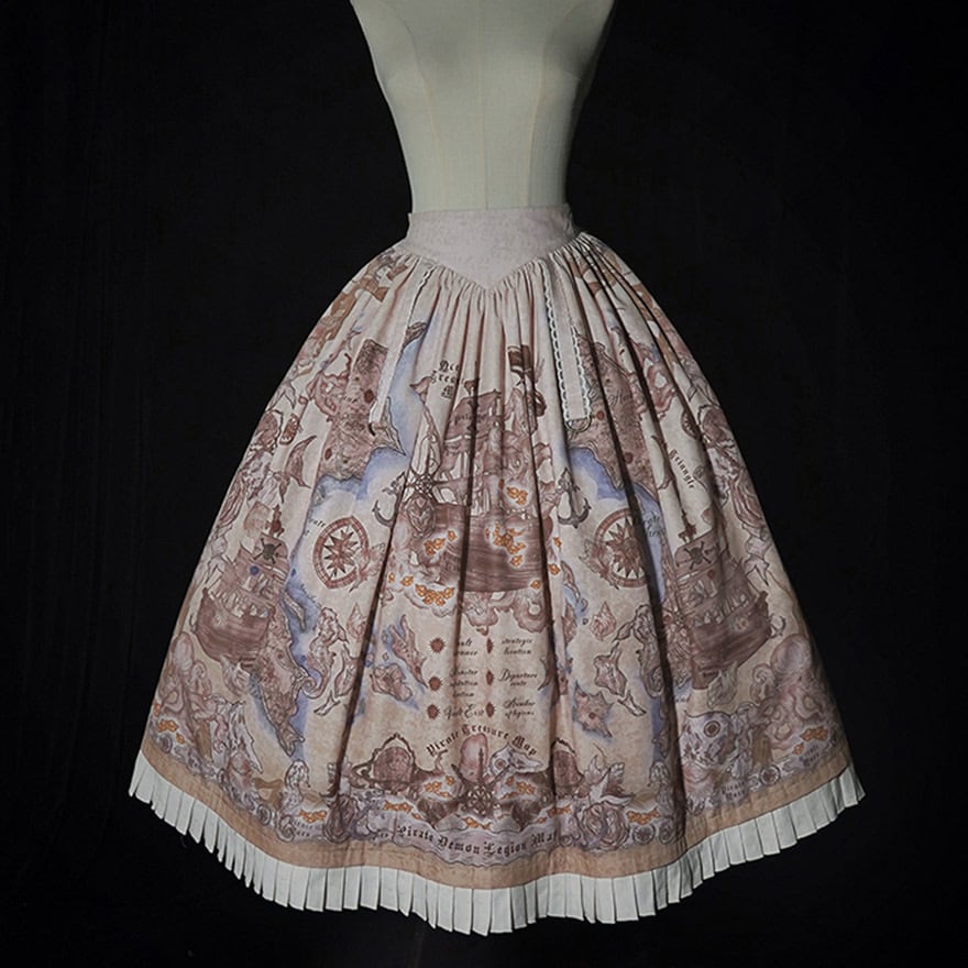 ブラウスやコルセットなど、合わせるトップスによってゴシックにもクラシカルにも、海賊風にも着こなせる高い汎用性が魅力です。