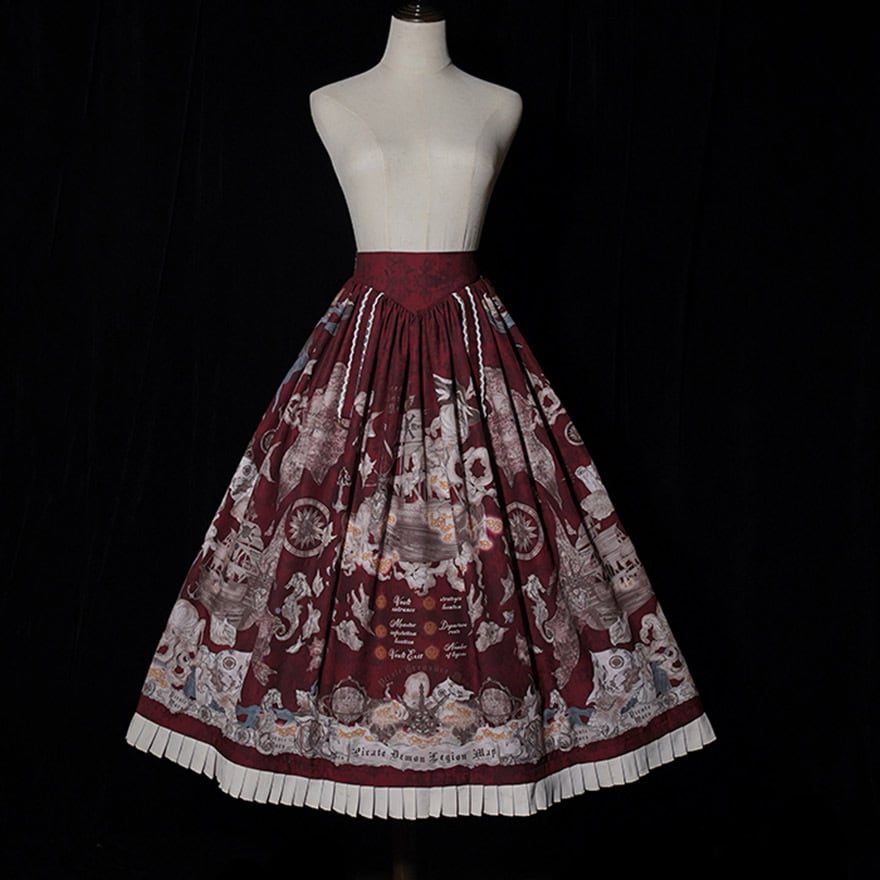 【予約商品 12月出荷】 サブカル系 地雷 天使と悪魔 クラシカルスカート ロング丈 プリント柄