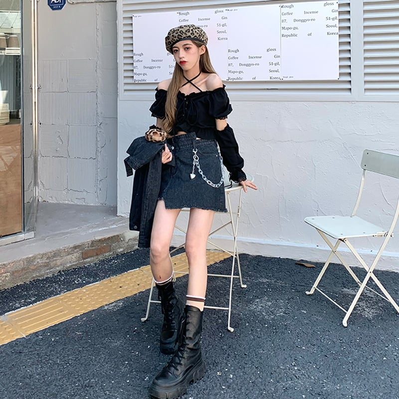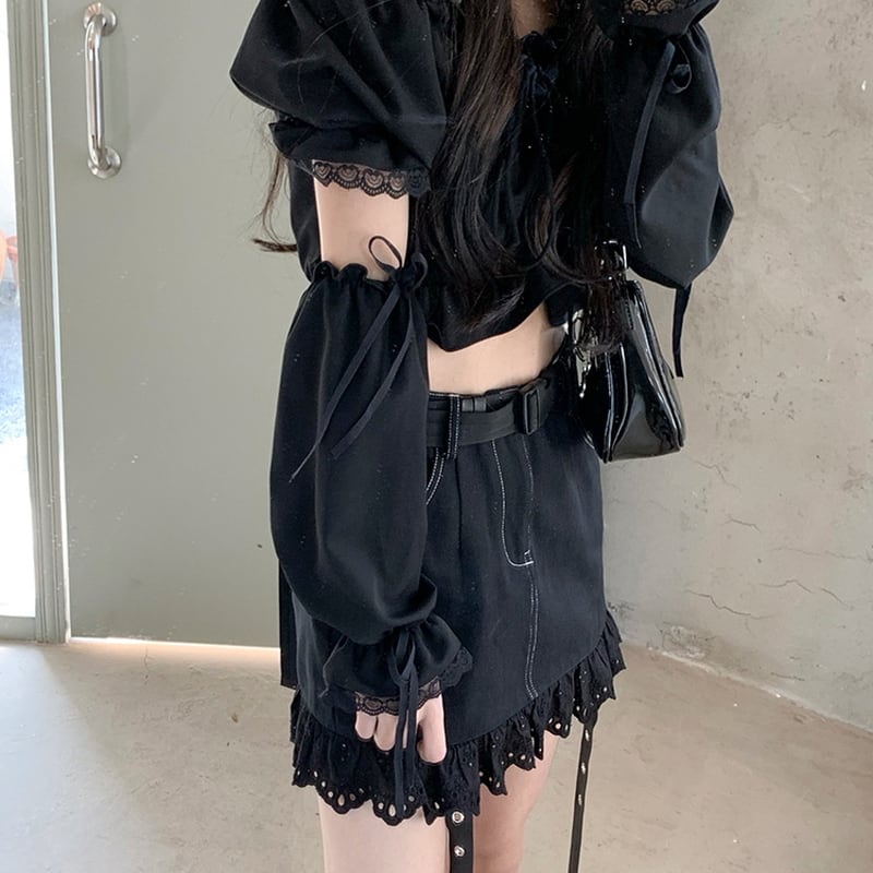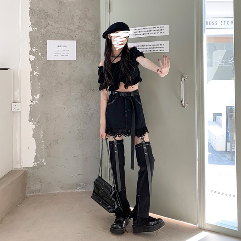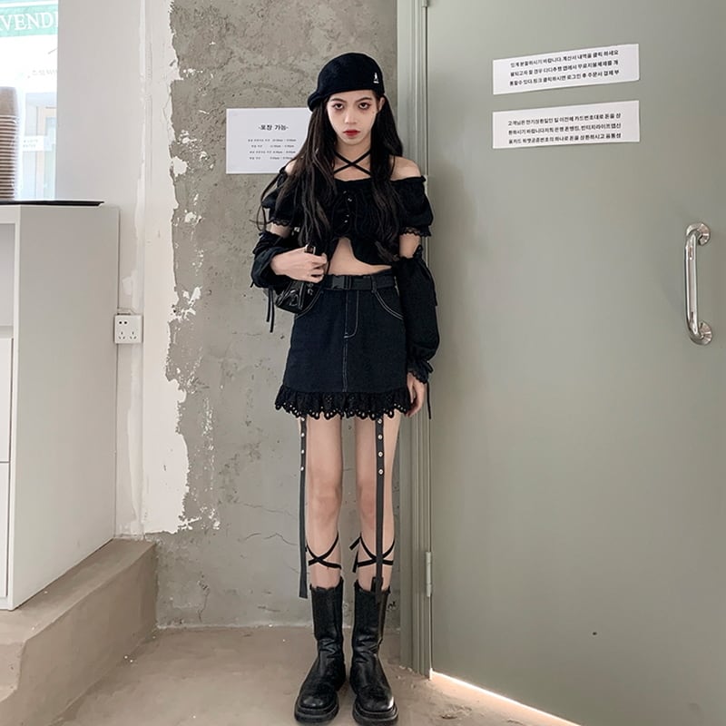 サブカル系 Tシャツ オフショル 2way アームカバー付き ストリートファッション