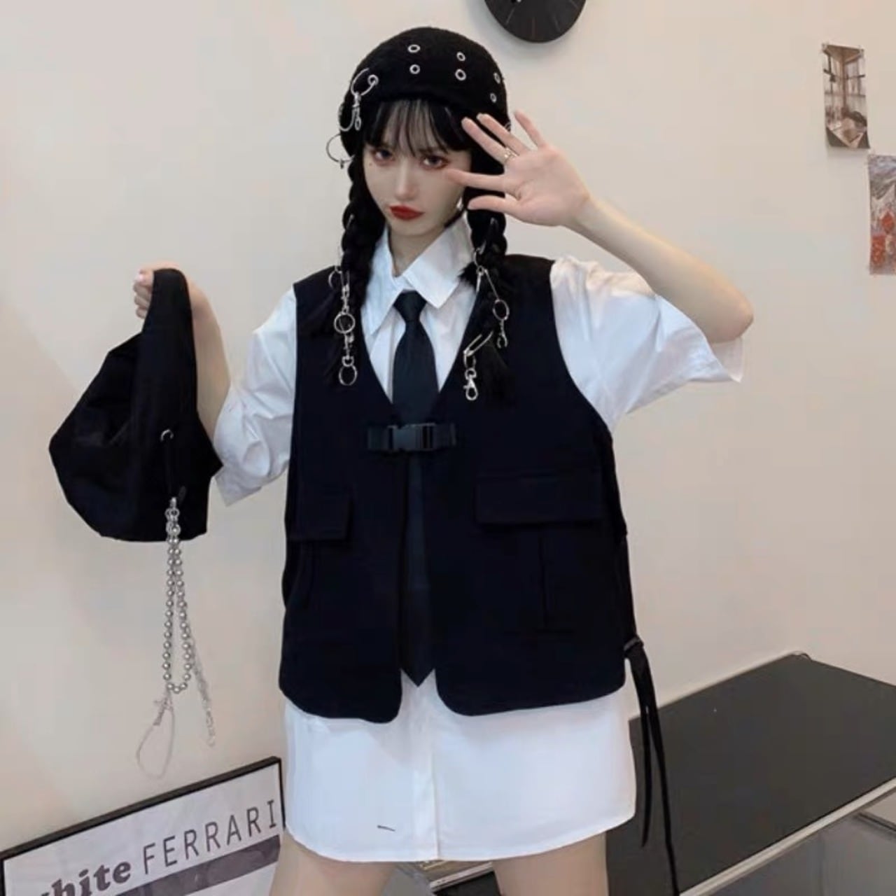 地雷系 ネクタイ付き シャツ チェーン付き サブカル系 ストリートファッション