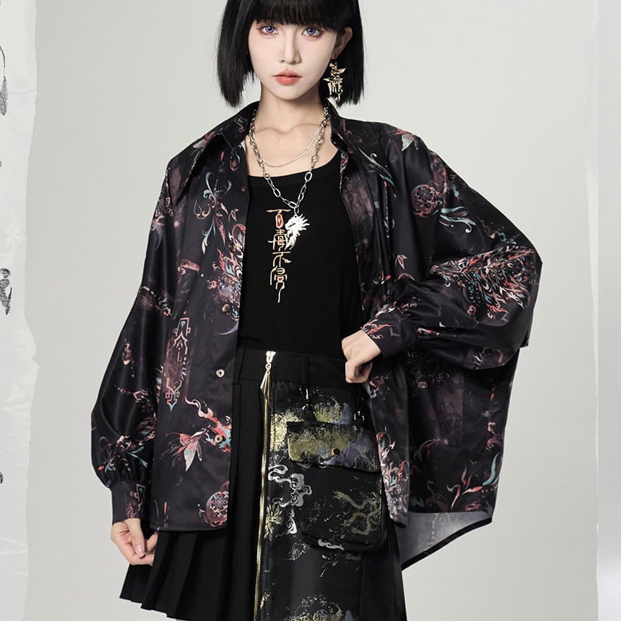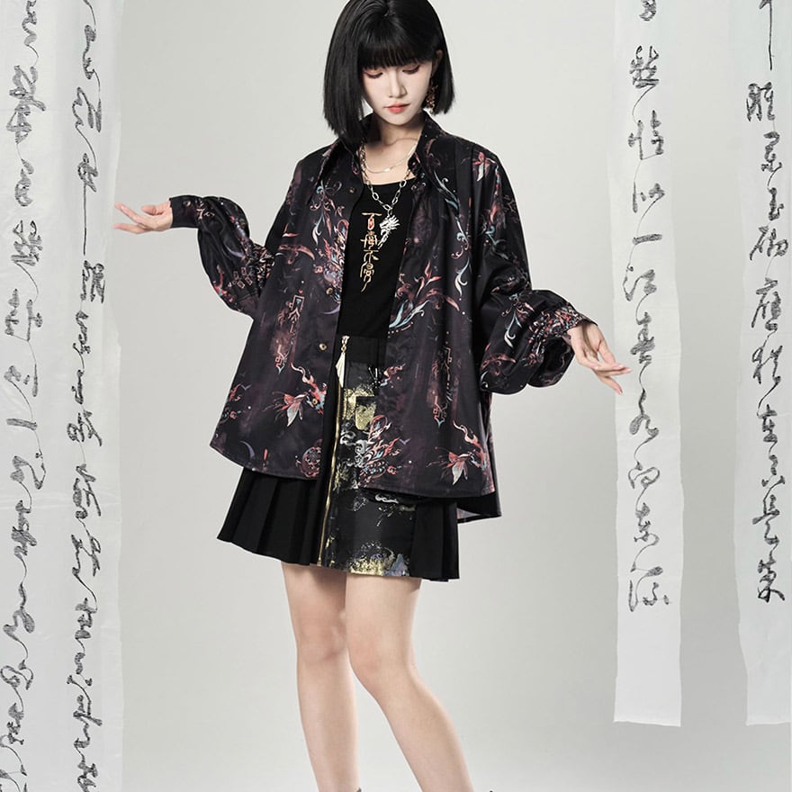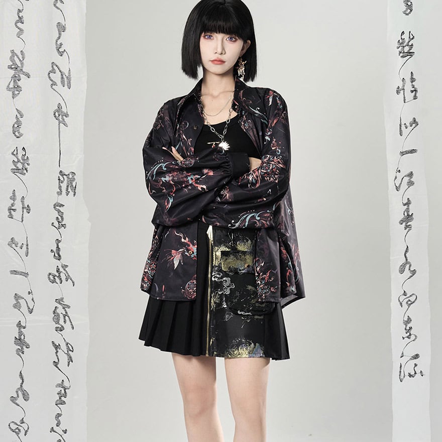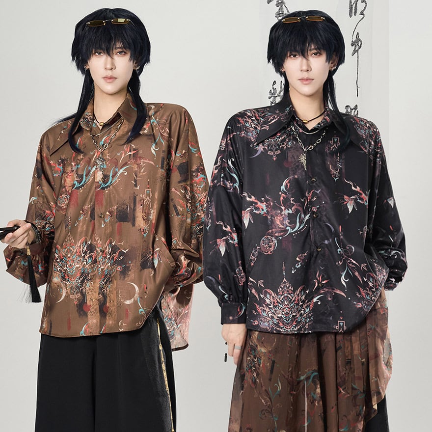 関連キーワード: #チャイナ風 #中華風 #シャツ #長袖 #獅子舞 #総柄 #モード系 #サブカル #ジェンダーレス #ユニセックス #個性的 #ストリート