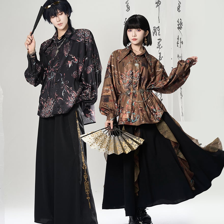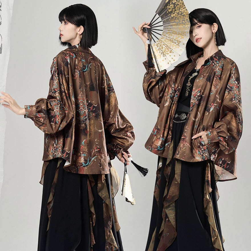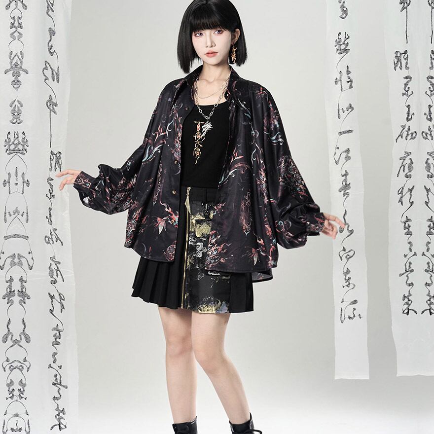 サブカル系 チャイナ風 シャツ 長袖 獅子舞 男女兼用 スタイリッシュ 大人増し 卿棠