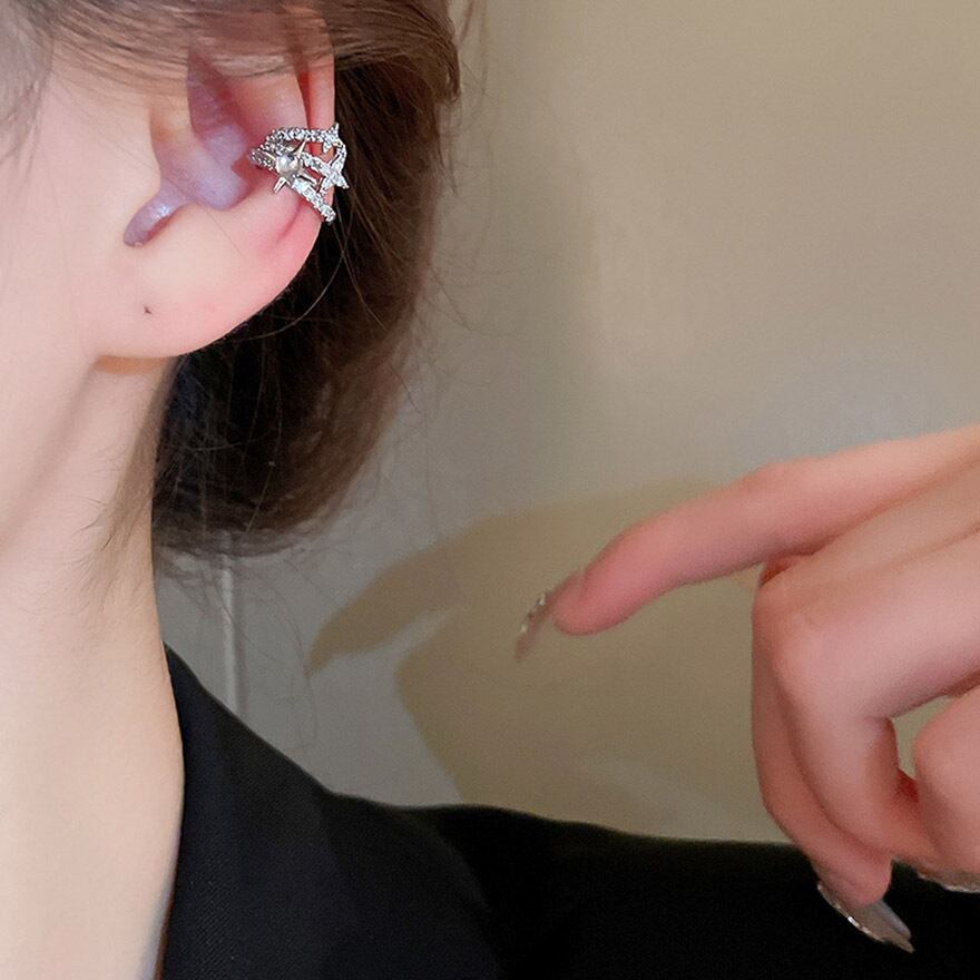 ピアスホールがなくても耳に挟むだけで簡単に装着できるクリップタイプ。