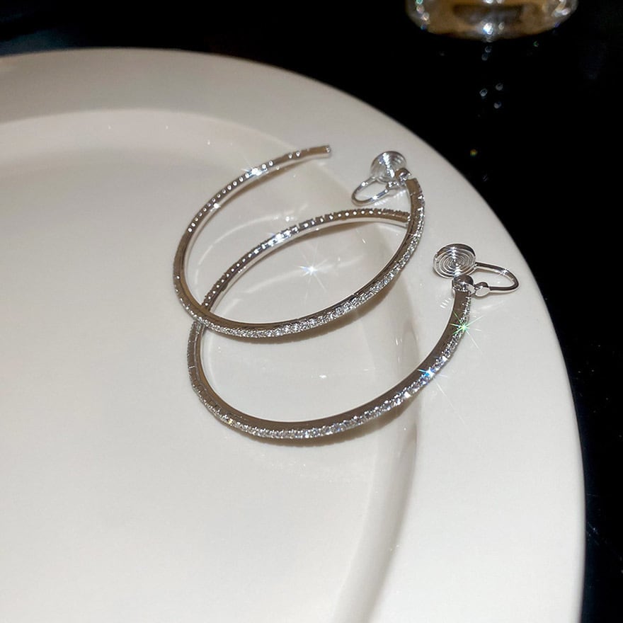 定番のフープデザインに、眩いほどのビジューを贅沢に敷き詰めたイヤリングです。