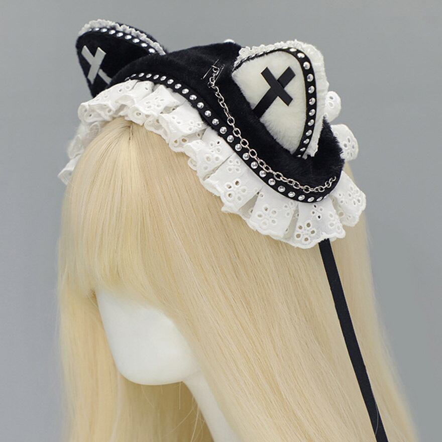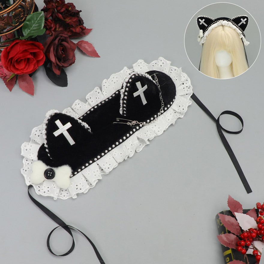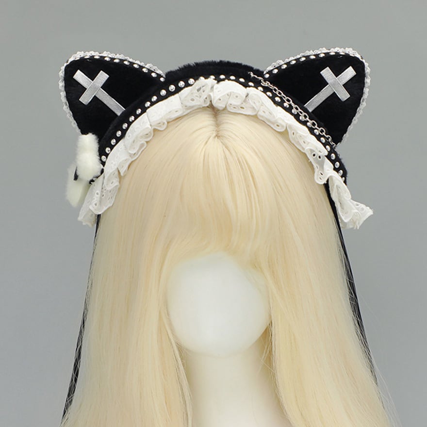 ふわふわの猫耳に、ゴシックな十字架のモチーフをあしらったカチューシャです。