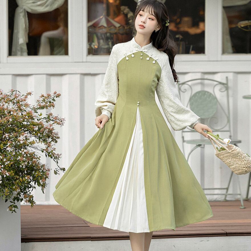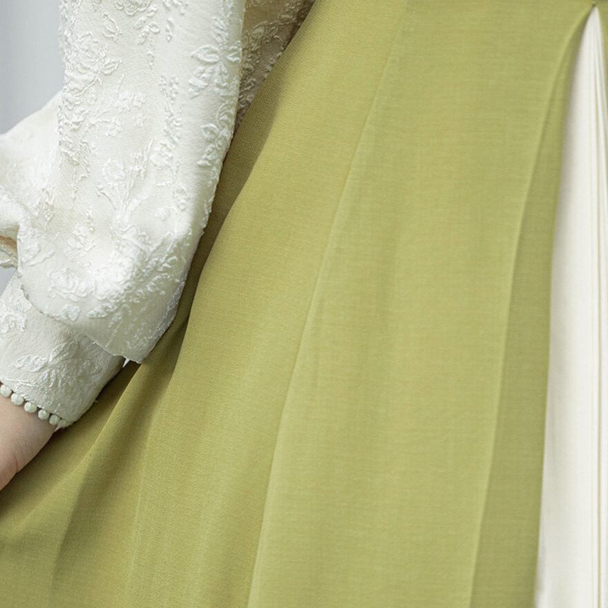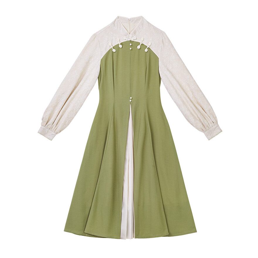 落ち着いたグリーンとオフホワイトの配色が上品な、中華風デザインのロリィタセットアップです。