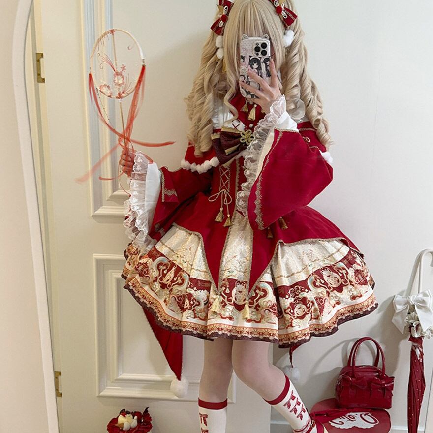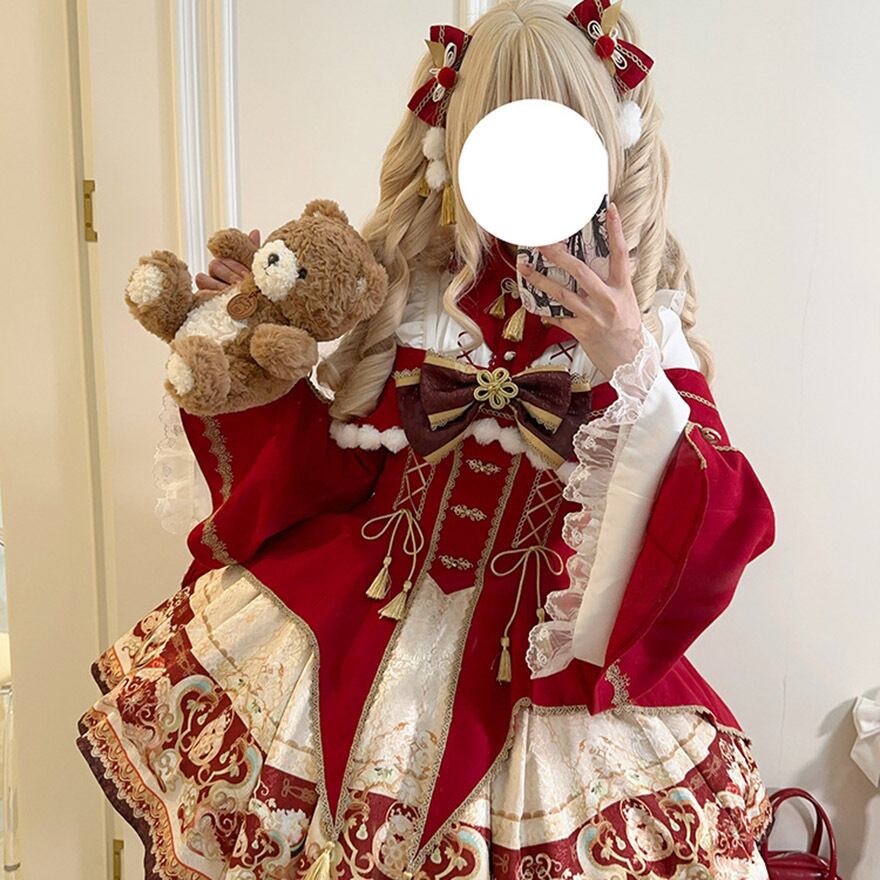 ロリィタ ドレス ヘアクリップ リボン 赤 チャイナ風 サブカル系 服