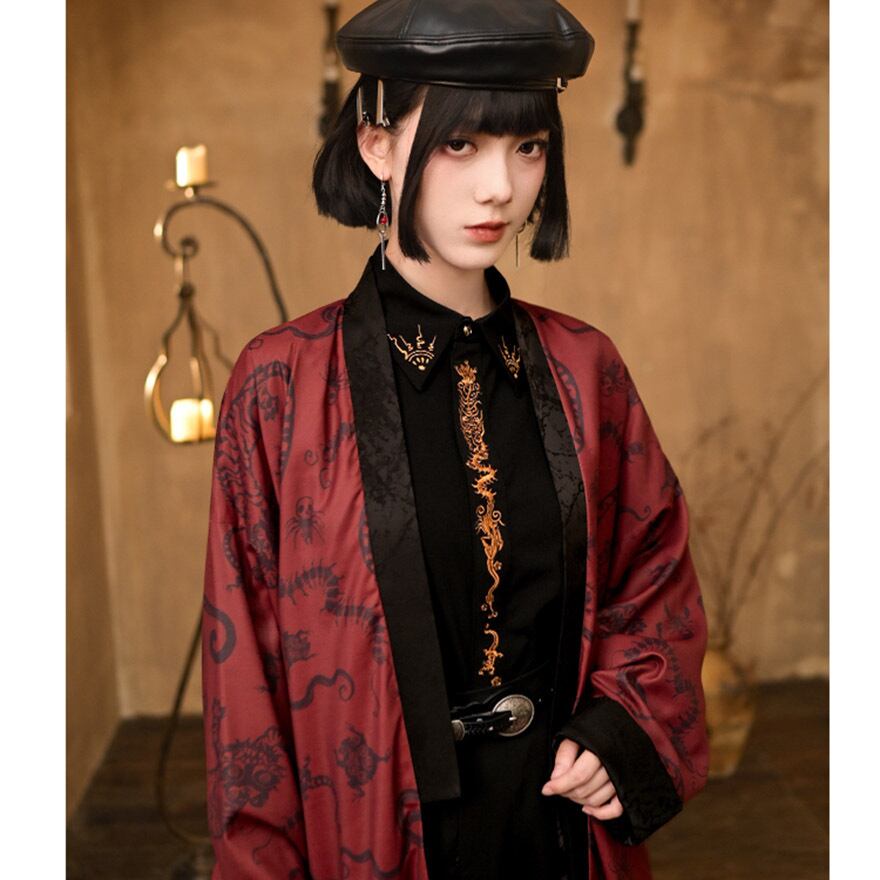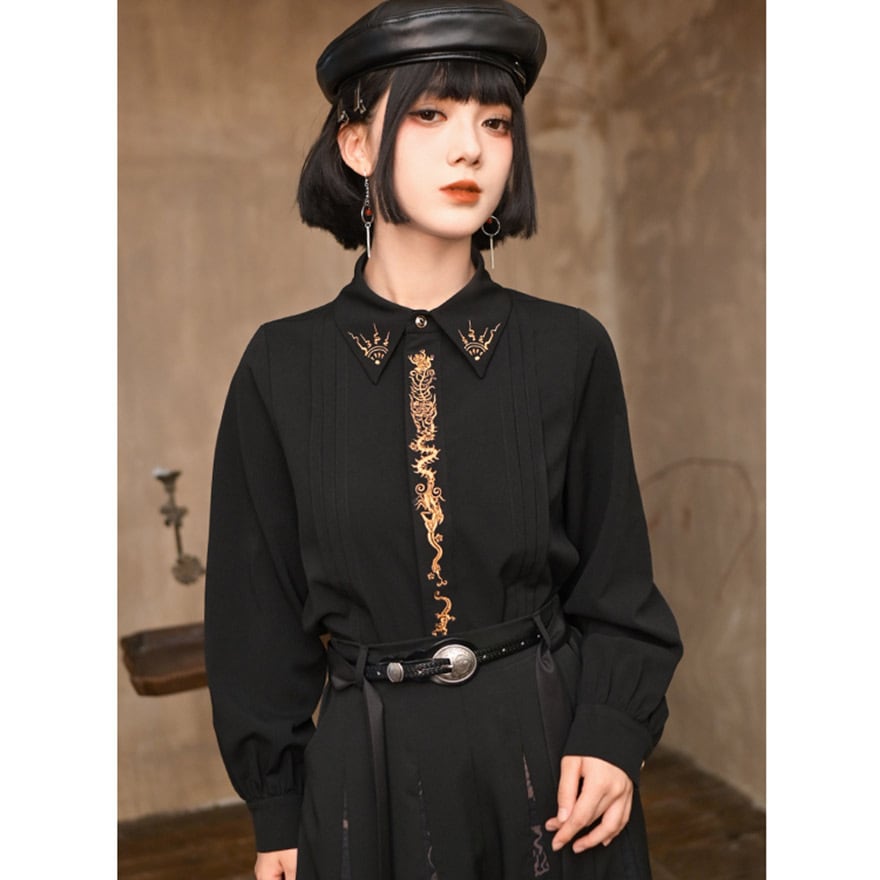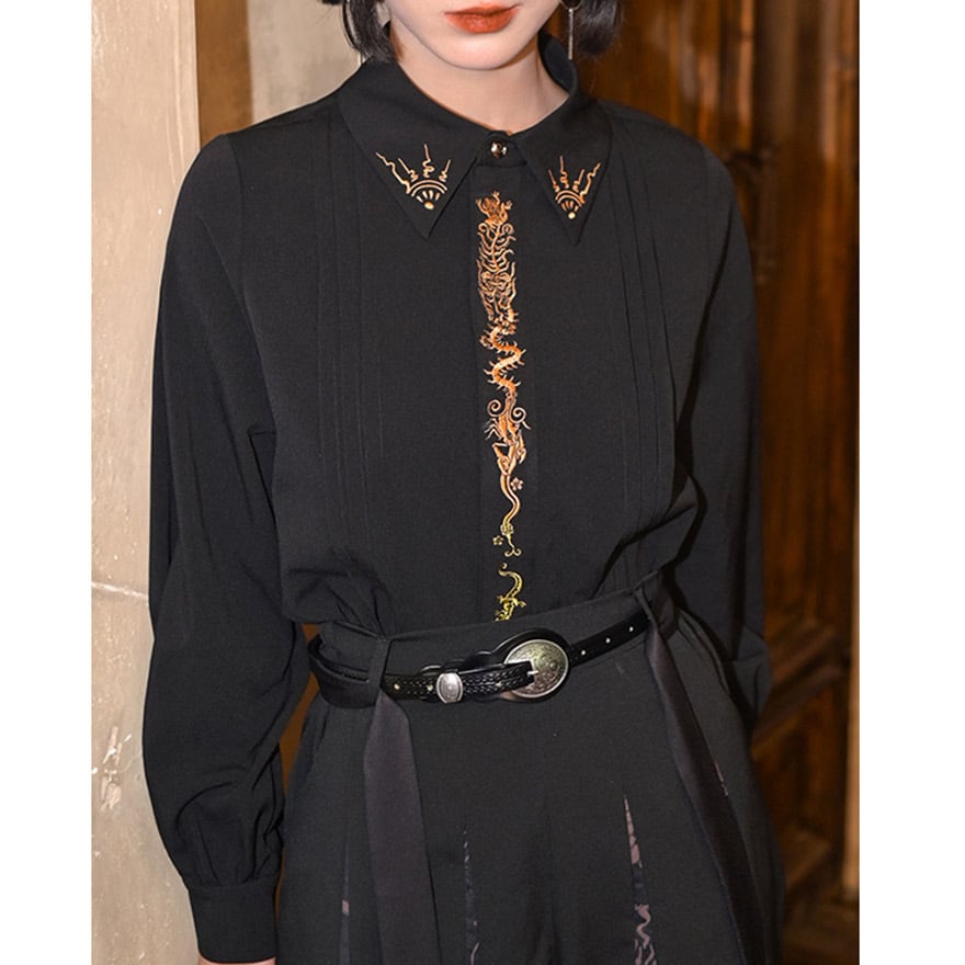 関連キーワード: #サブカル #地雷系 #中華風 #ゴシック #刺繍シャツ #龍 #ドラゴン #モード系 #黒 #秋コーデ