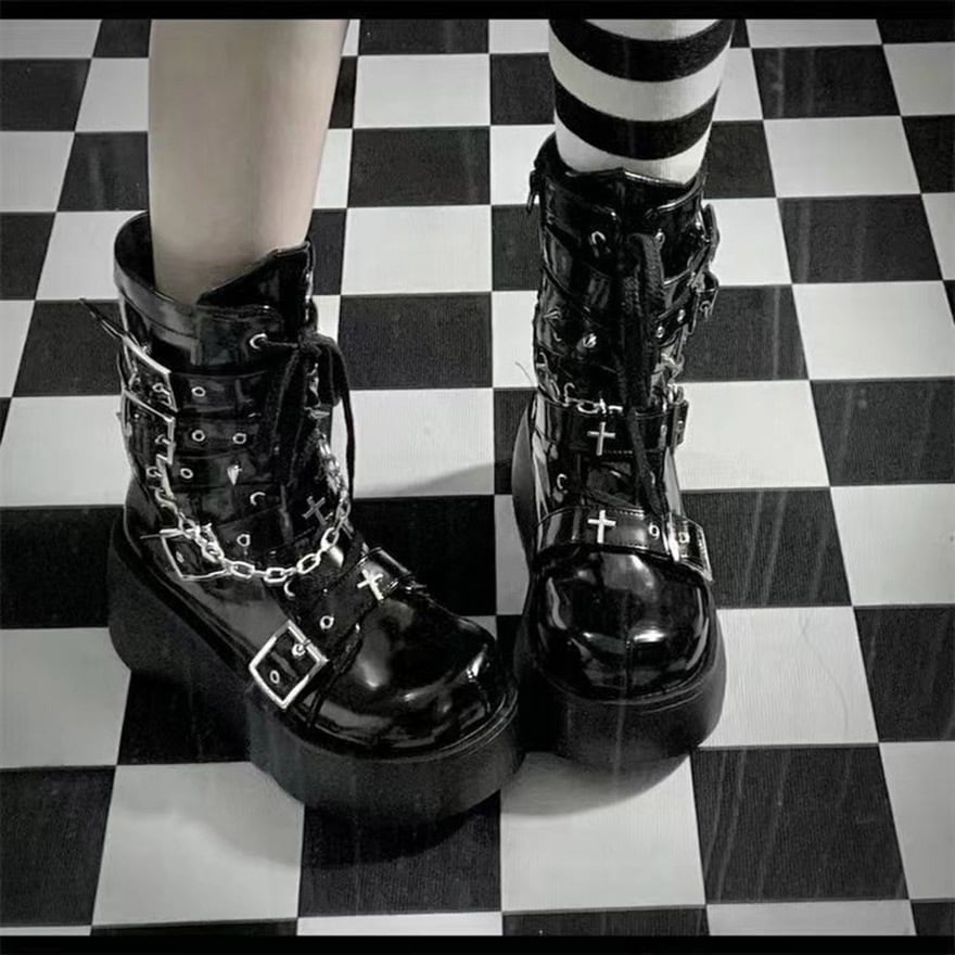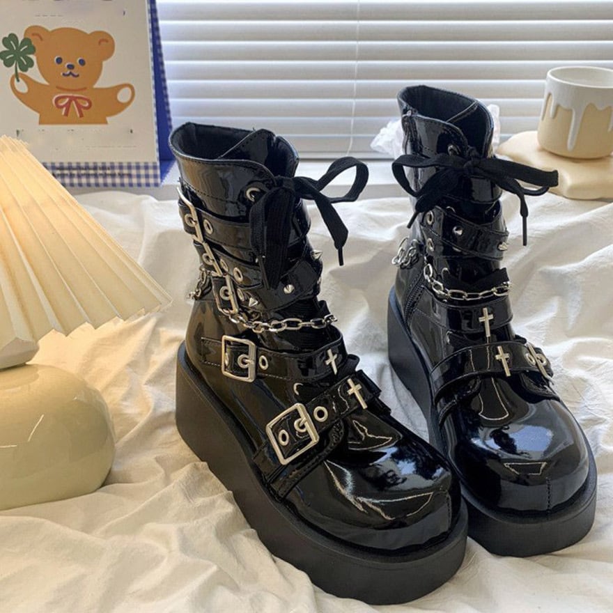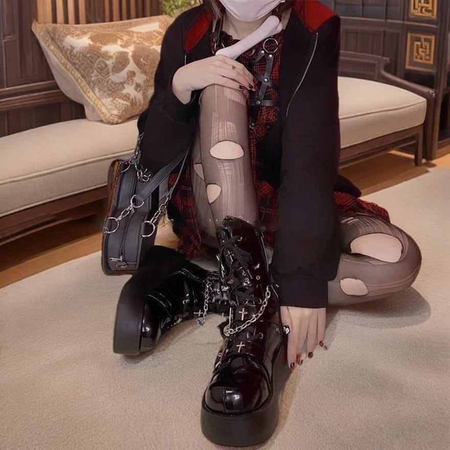 関連キーワード: #地雷系 #サブカル #パンク #ゴシック #ストリートファッション #厚底ブーツ #厚底 #チェーン #十字架 #エナメル #可愛い #韓国ファッション