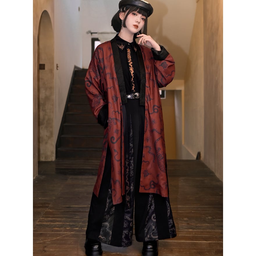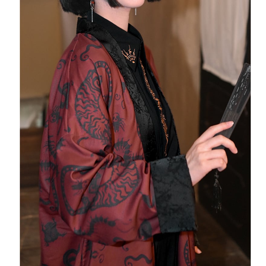 関連キーワード: #サブカル #地雷系 #コート #ロングコート #羽織り #中華風 #チャイナ #ゴシック #モード系 #龍 #赤 #秋冬コーデ