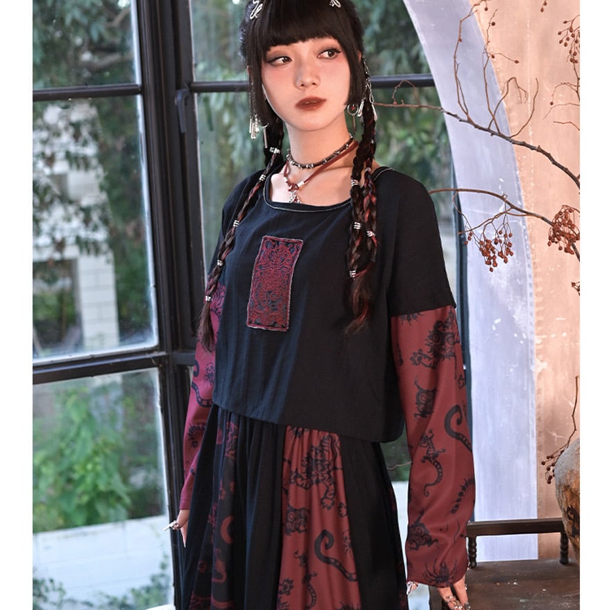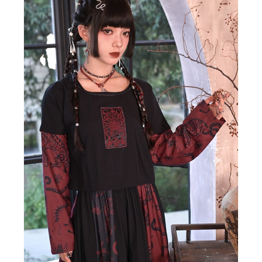 関連キーワード: #サブカル #地雷系 #チャイナ風 #Tシャツ #フェイクレイヤード #個性的 #古怪舎 #ストリートファッション #ダーク