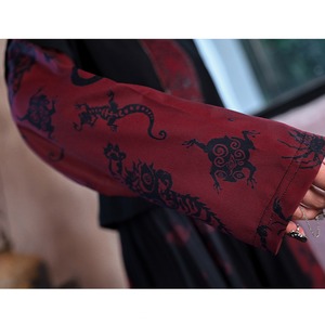 袖には蛇や蠍、虎といったモチーフが描かれ、ダークでミステリアスな雰囲気を醸し出します。