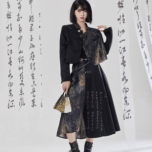 サブカル系 チャイナ風スカート レトロ バイカラー 秋冬服 卿棠オリジナル アラサー 30代