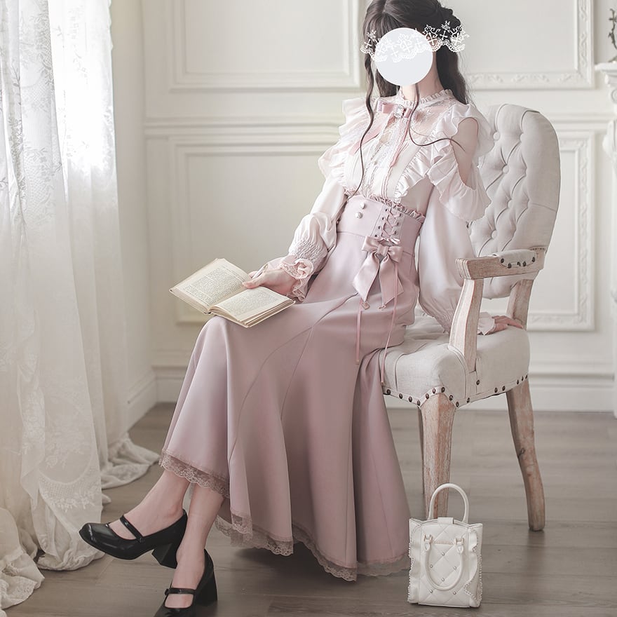 ロリィタ 控えめ スカート マーメイドスカート 編み上げ ピンク 清楚系 胡桃木