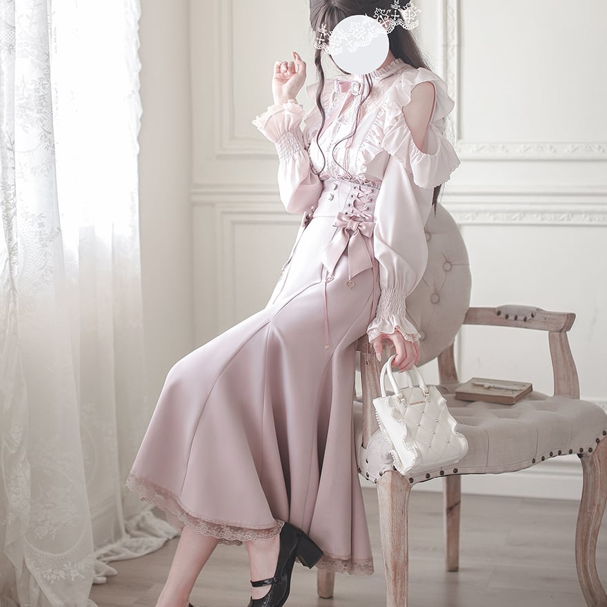 関連キーワード: #ロリータ #クラロリ #量産型 #ブラウス #フリル #レース #リボン #オープンショルダー #お嬢様 #上品 #エレガント #可愛い #白 #ピンク #推し活