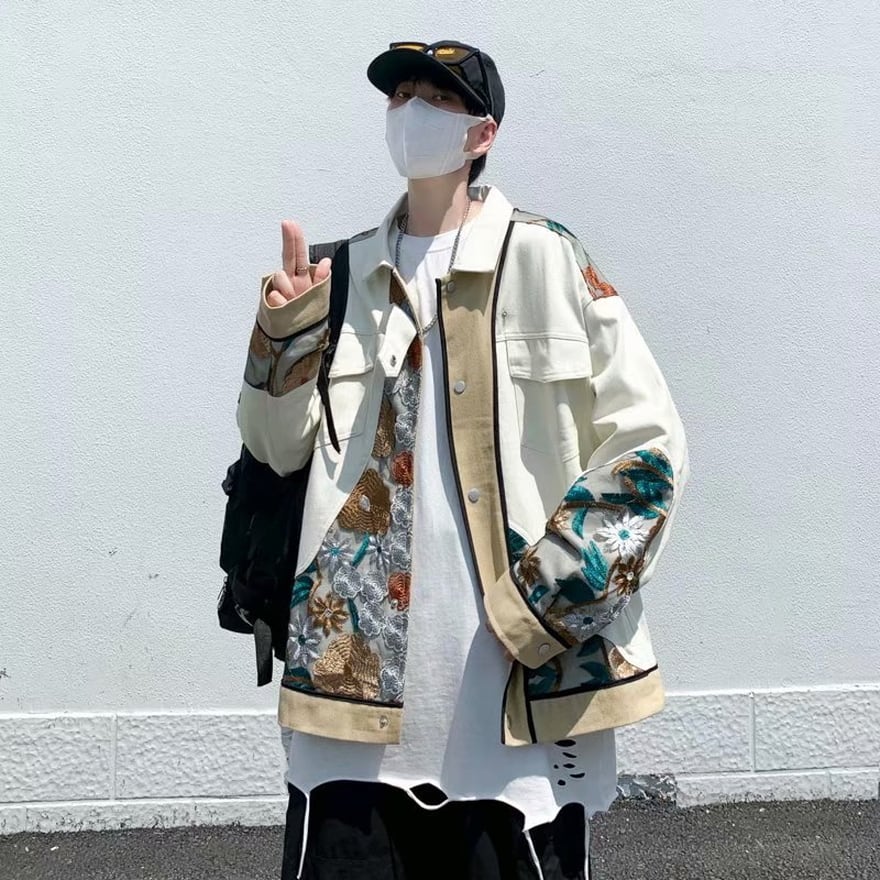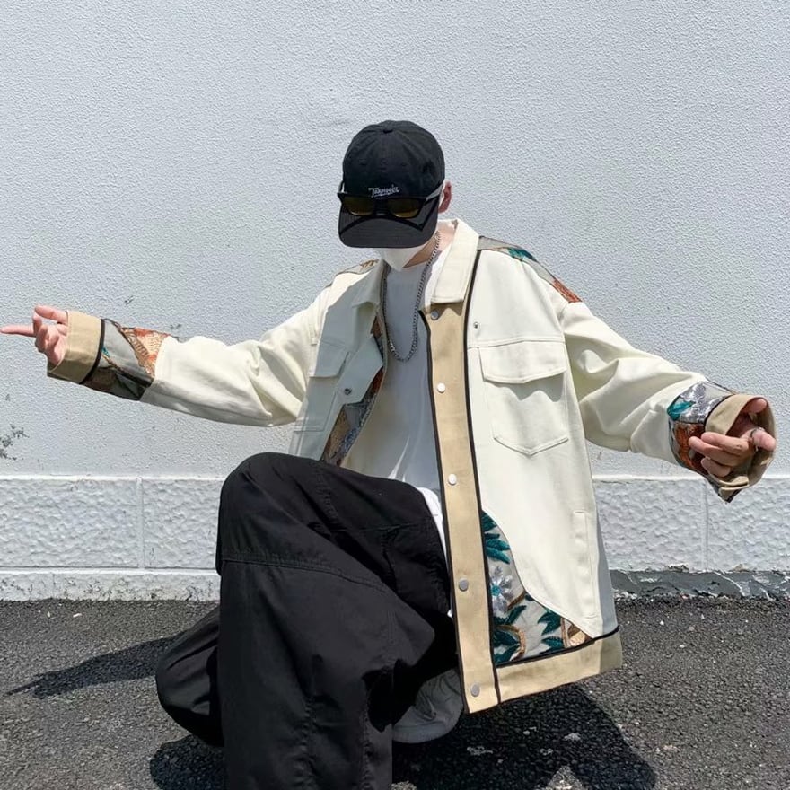 Tシャツにさらっと羽織ってカッコいいスタイルに決まる刺繍ジャケット