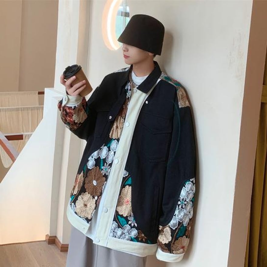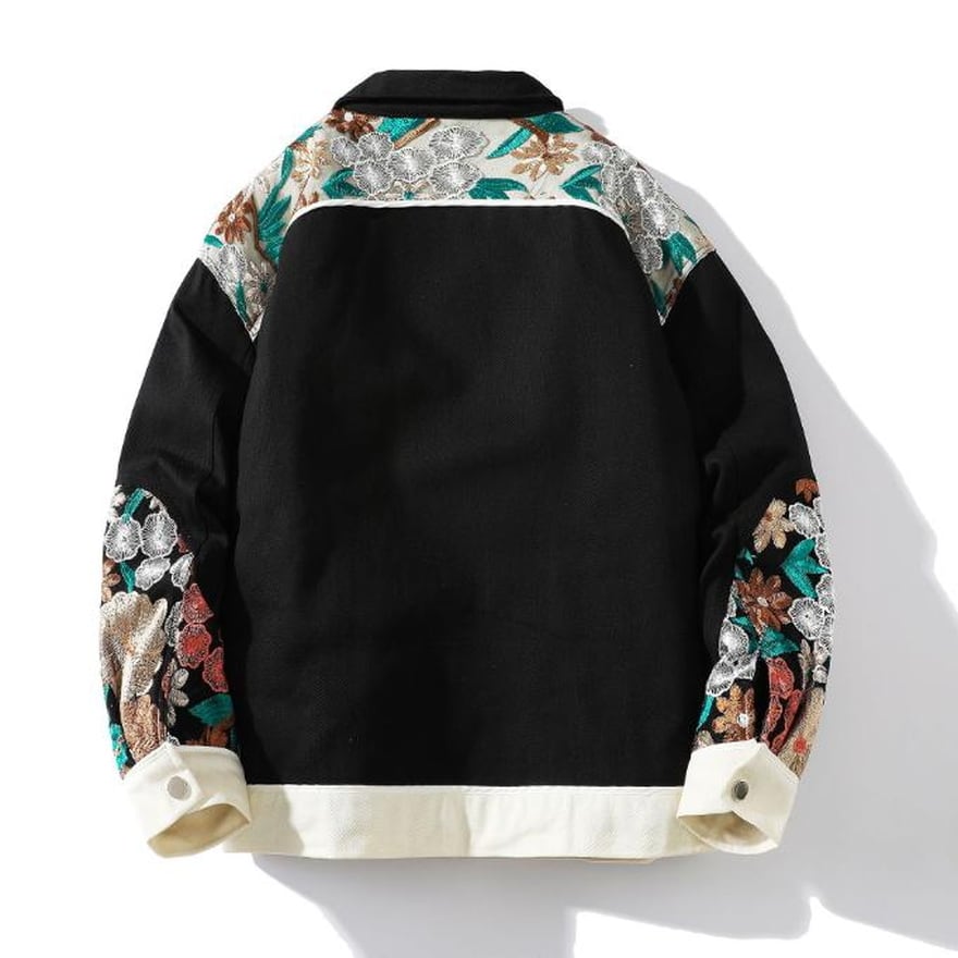 即納 Lサイズ 中華風刺繍 メンズ ジャケット 花柄 クール