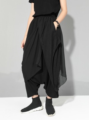 即納 L モード系 サルエルパンツ ワイドパンツ シフォン 春夏秋
