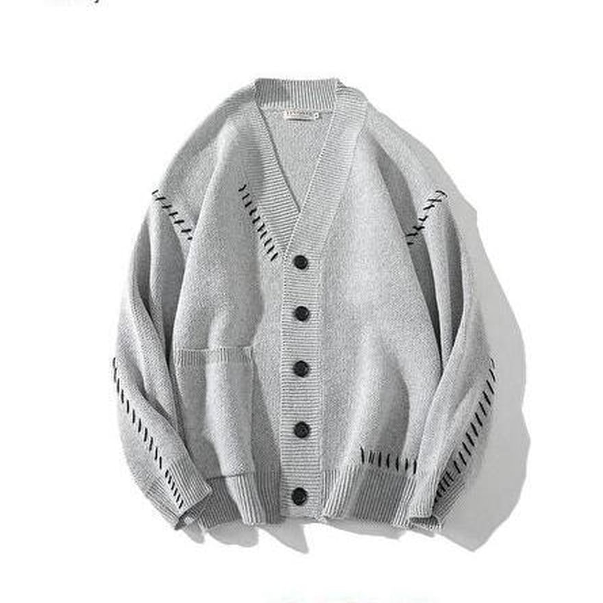 ゆったりサイズ ニット カーディガン ツギハギ Vネック ユニセックス カジュアル おしゃれ