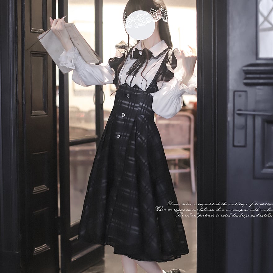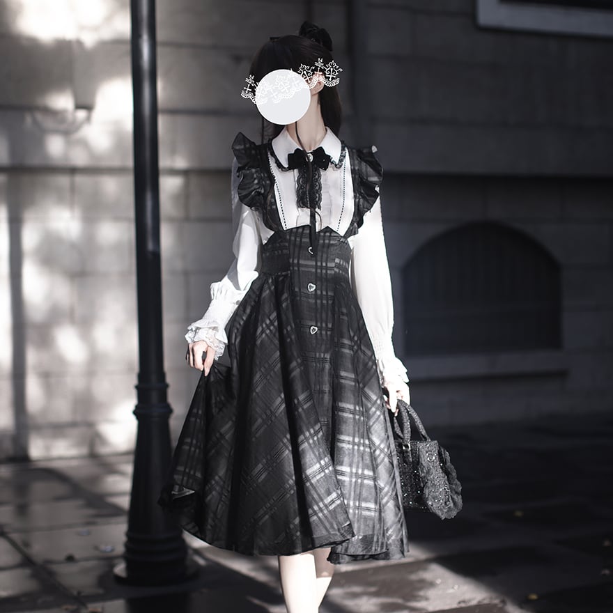 関連キーワード: #ロリータ #クラロリ #ジャンパースカート #量産型 #モノトーン #チェック柄 #お嬢様 #清楚系 #Aライン #ロング丈 #可愛い